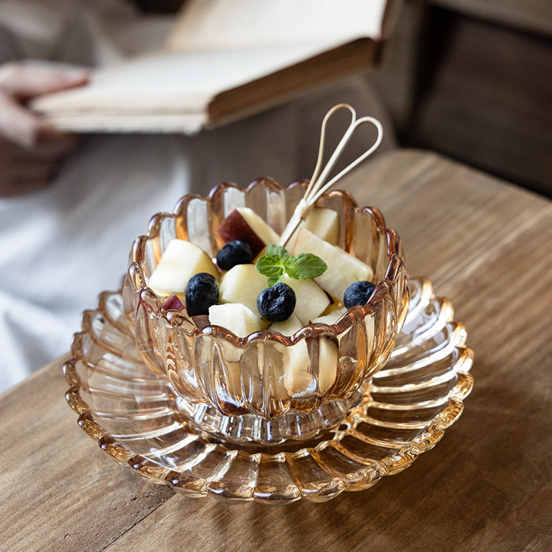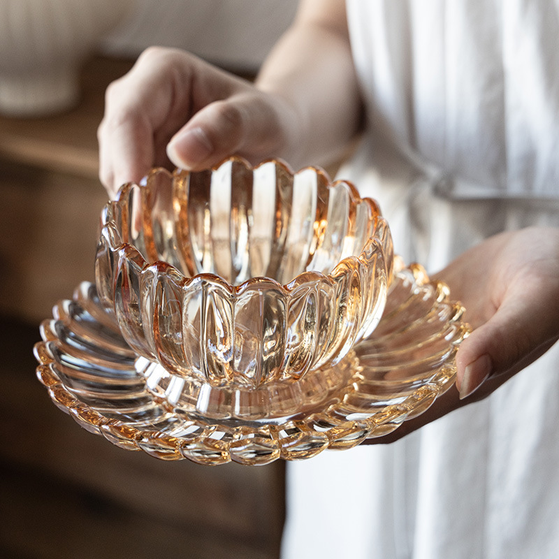 莲花-玻璃碗碟琥珀色套装