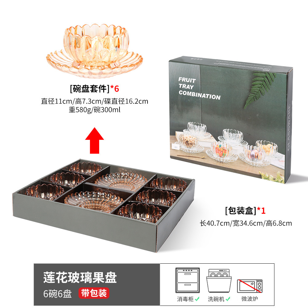 琥珀色玻璃果盘套装家用水果沙拉碗客厅茶几摆放盘高颜值甜品碗盘