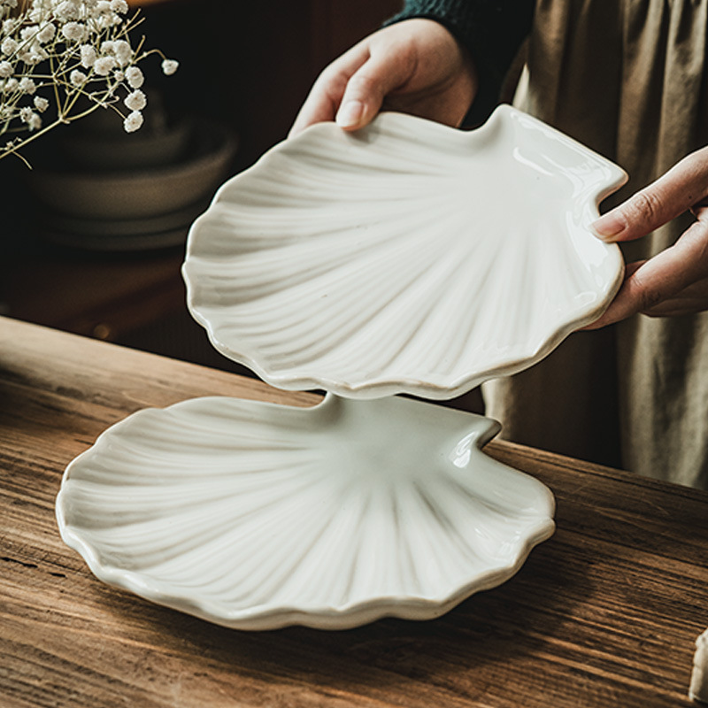 设计感贝壳盘陶瓷盘子批发餐厅精致甜品盘家用菜盘点心盘餐具餐盘