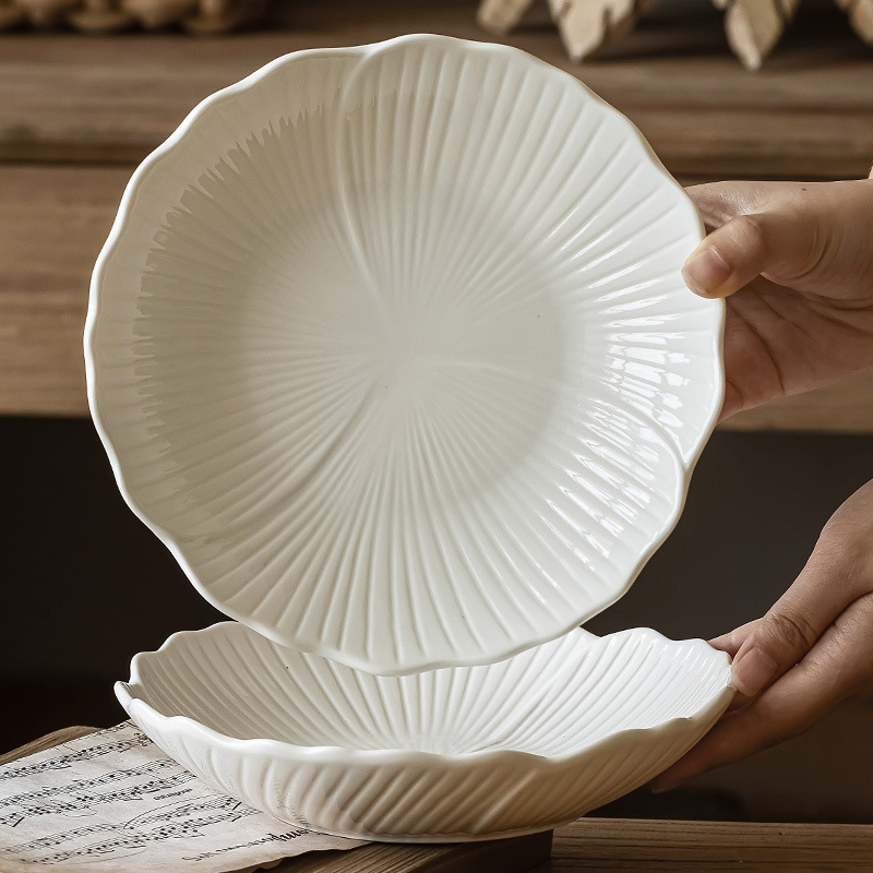 花边纯色陶瓷水果盘高级感零食干果盘甜品盘家用客厅汤盘菜盘餐盘