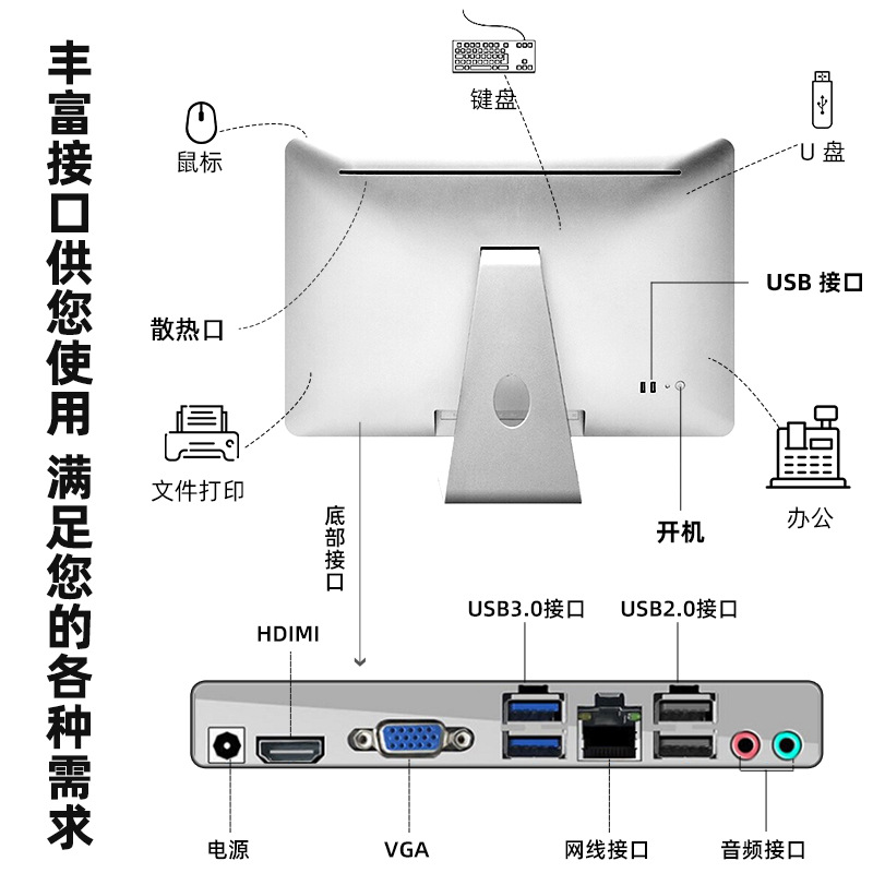 电脑一体机支持触摸壁挂办公教育桌面全套有线键鼠台式机