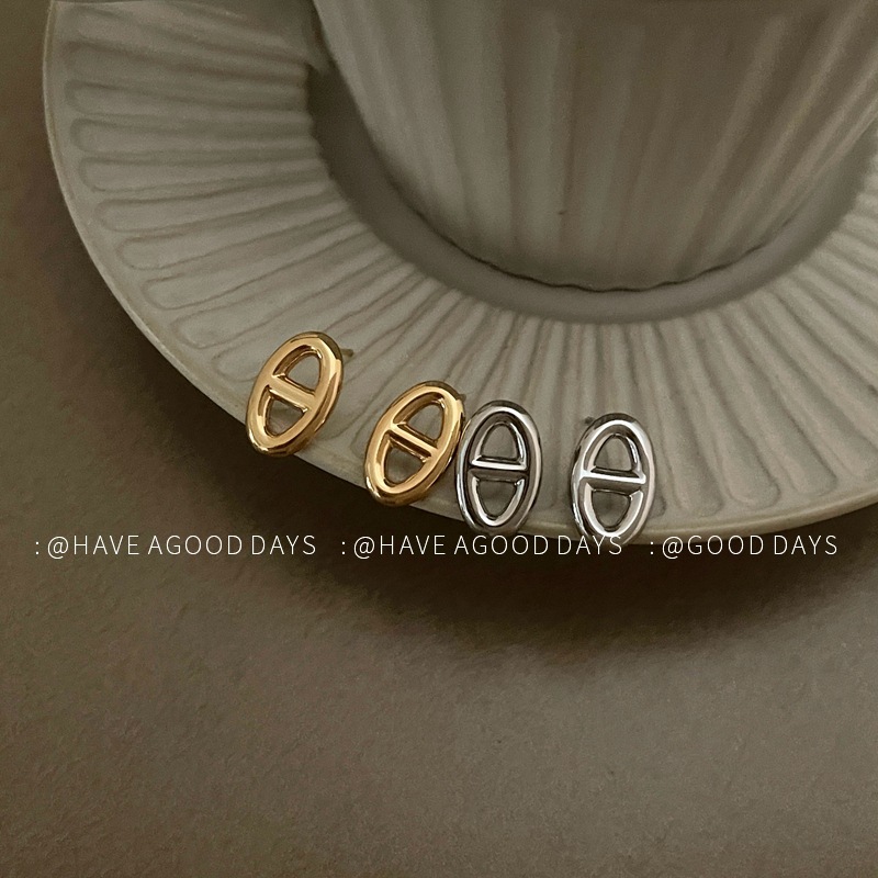 简约猪鼻子耳钉百搭冷淡风个性耳饰925银针时尚潮流小众轻奢风女~