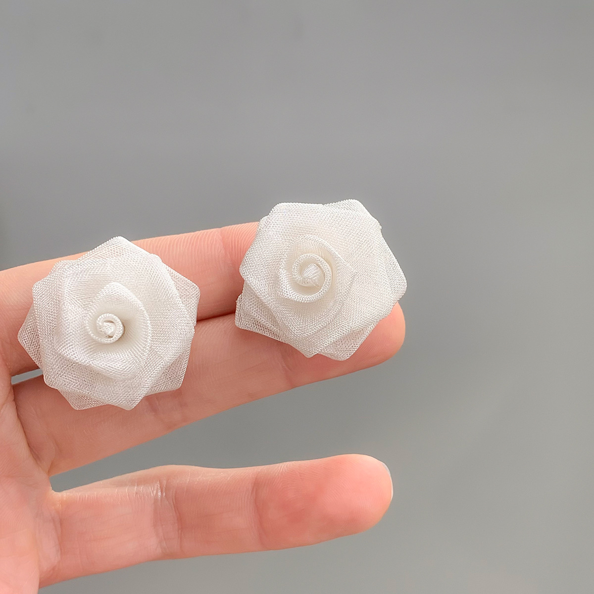 玫瑰的故事~白色欧根纱玫瑰花耳钉ins氛围感小巧精致高级设计耳饰