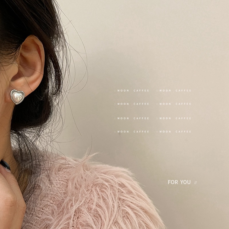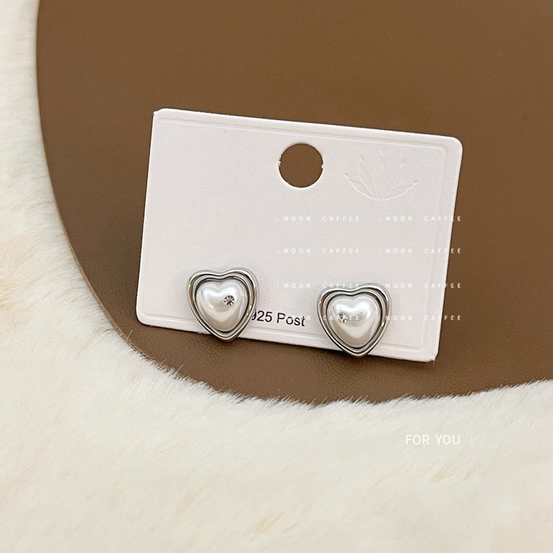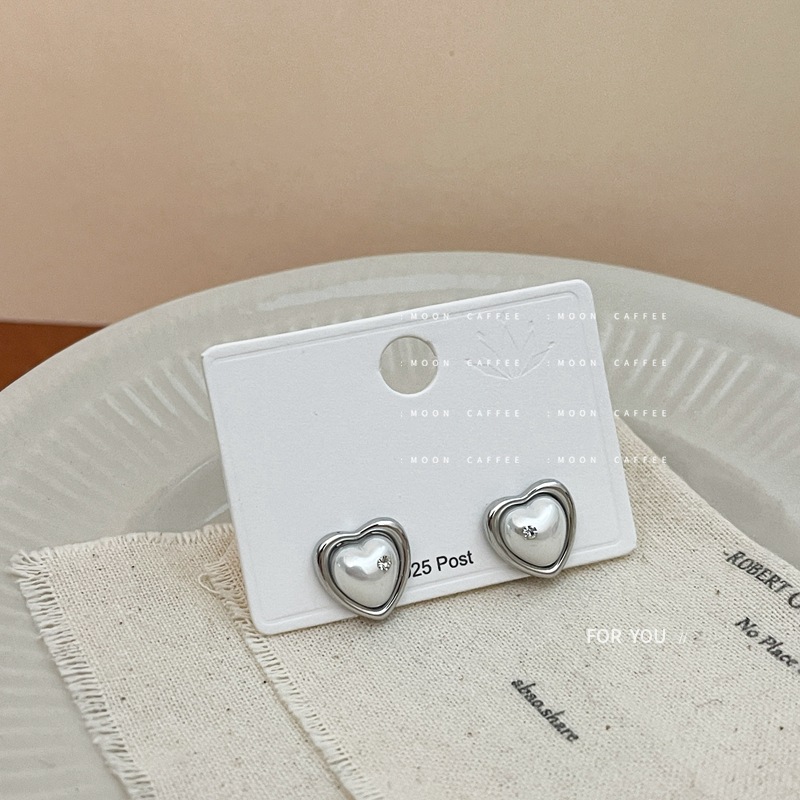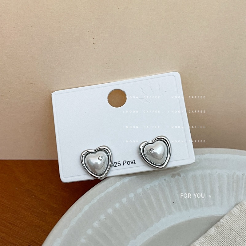 珍珠爱心耳环女气质简约耳饰个性高级感小众设计锆石珍珠爱心耳钉