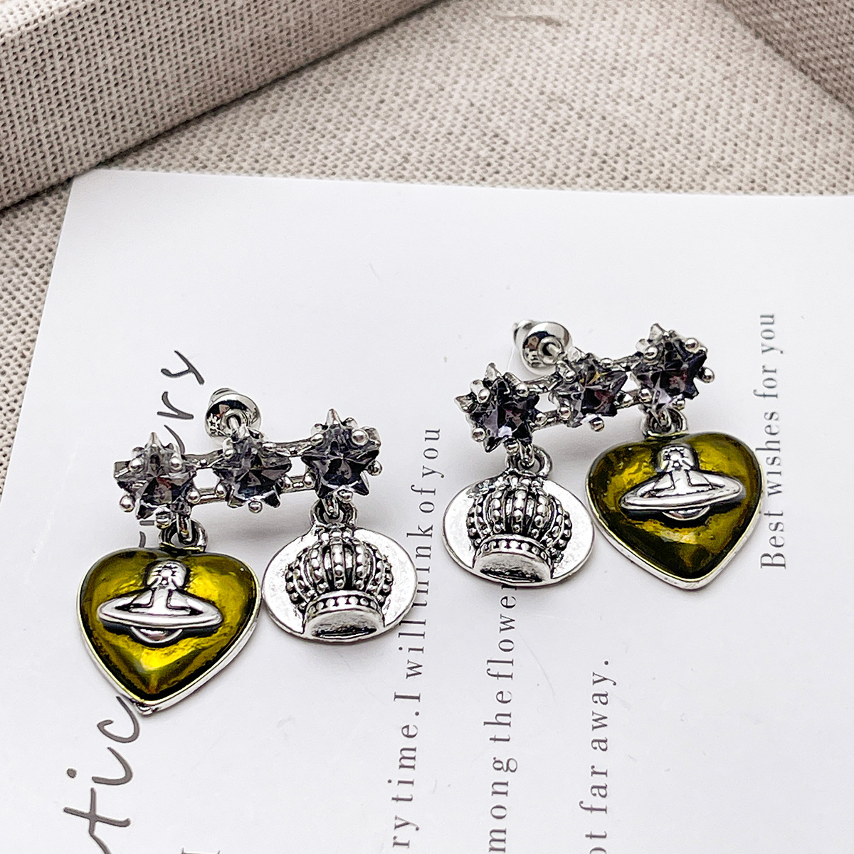 西太后土星珐琅彩耳钉女复古做旧小众设计个性时尚气质百搭耳环耳