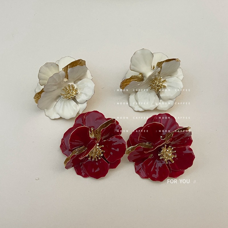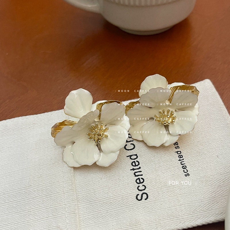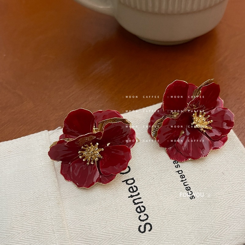 925银针法式夸张层次感花朵滴釉珐琅重工耳环超仙森系复古耳钉女