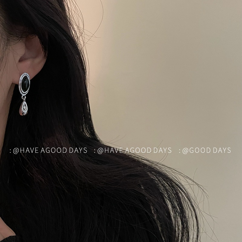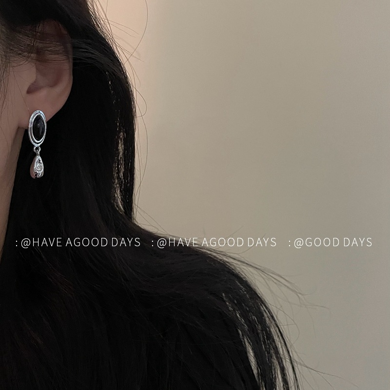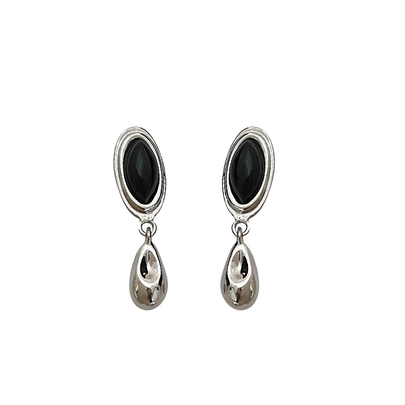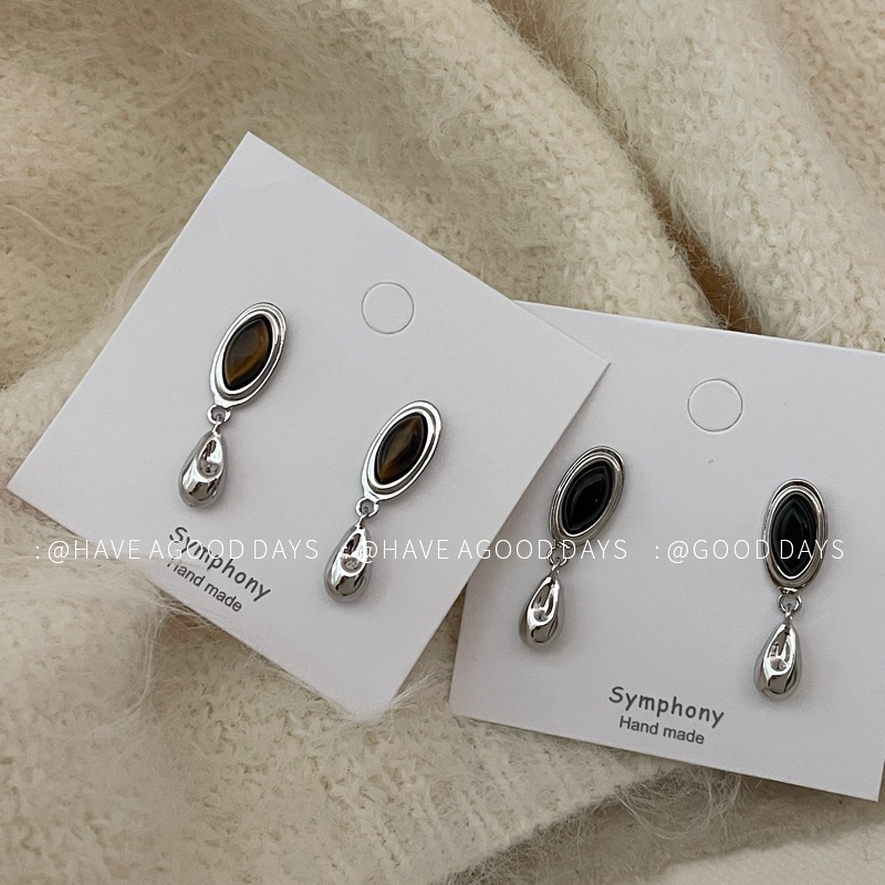 复古冷淡风简约几何水滴耳环虎眼石小众设计感耳饰925银针个性女~