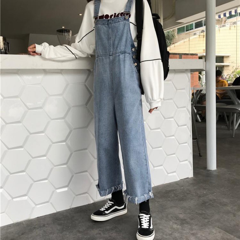 网红牛仔背带裤女春夏新款高腰宽松显瘦韩版减龄小个子吊带裤