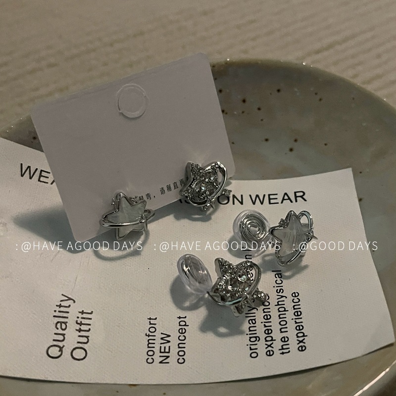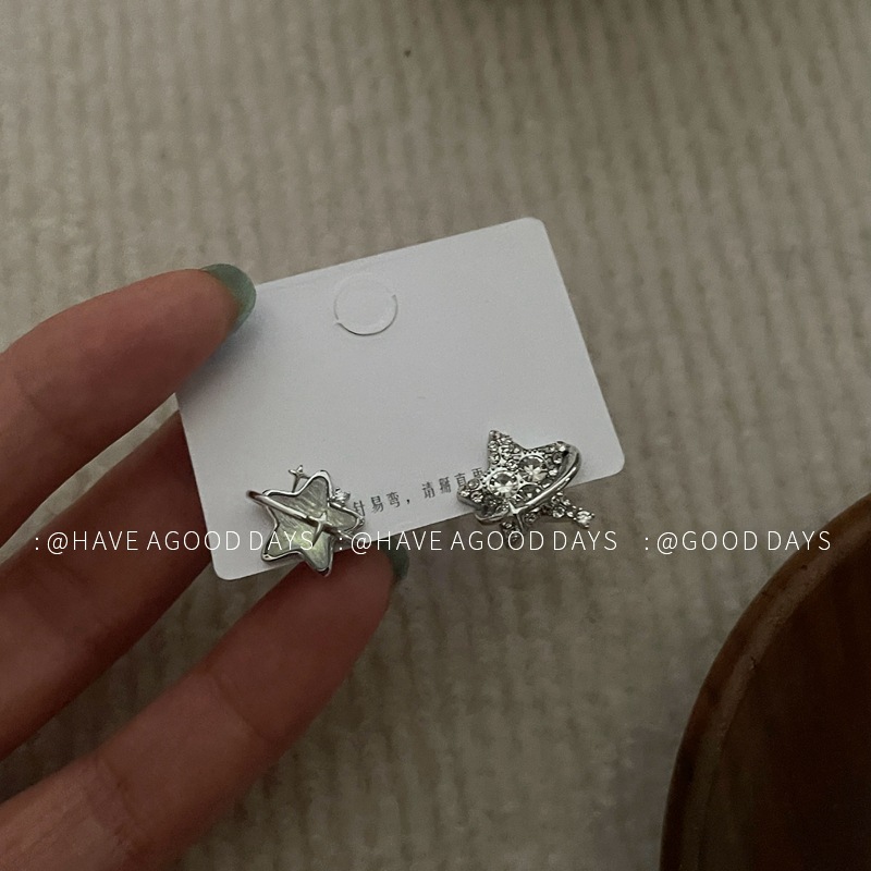 不对称星星耳钉耳夹小众设计感耳饰气质个性925银针简约轻奢风女~