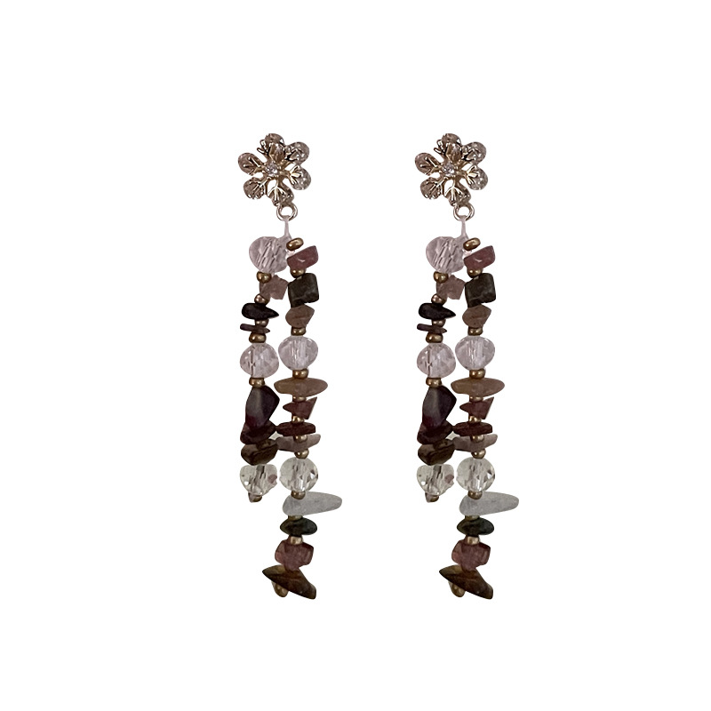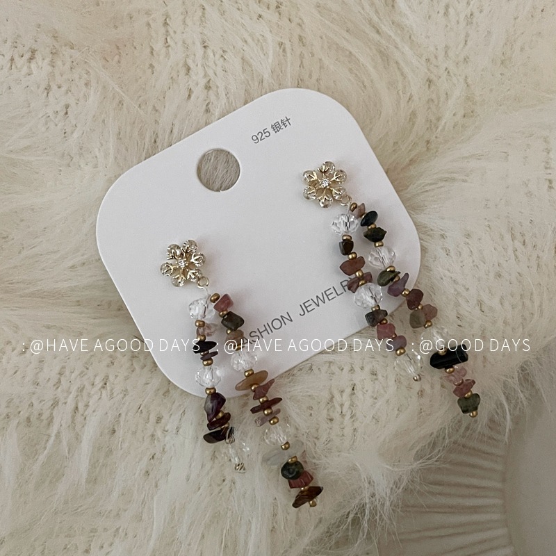 民族风彩色碎石流苏花朵耳环甜美高级感气质小众耳饰925银针个性~