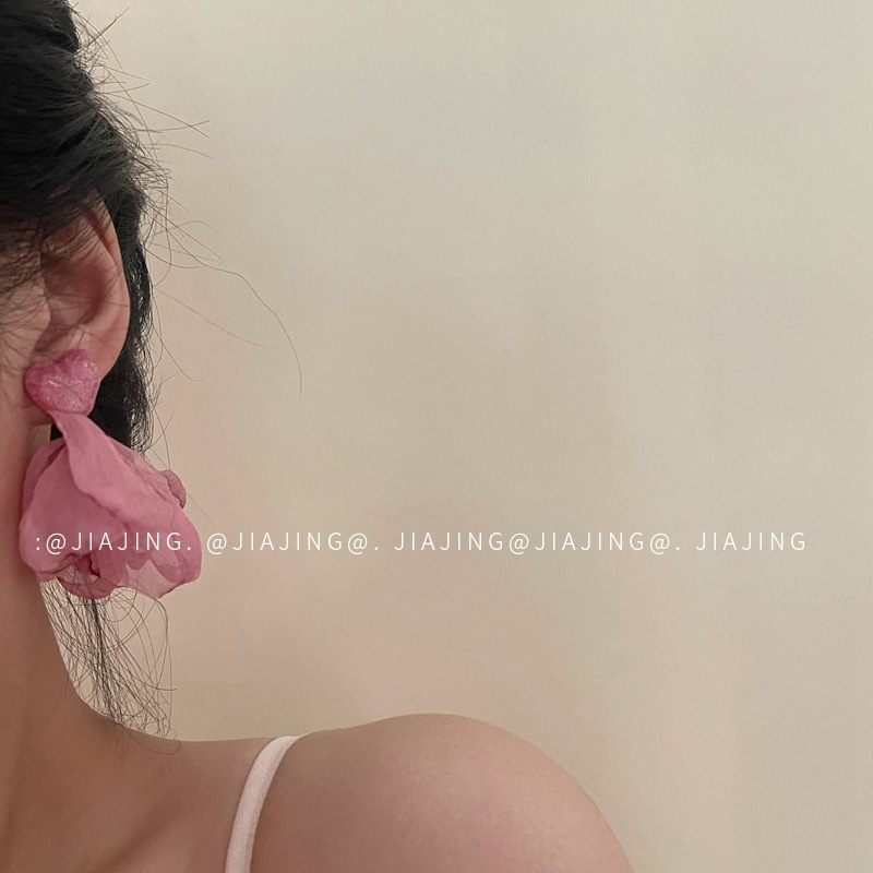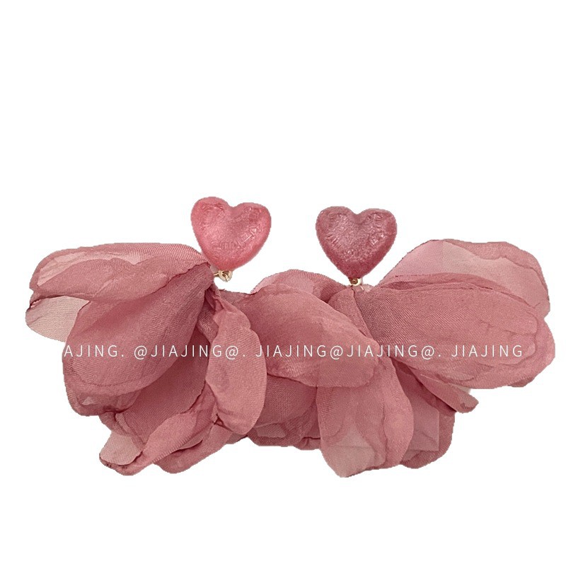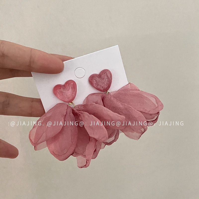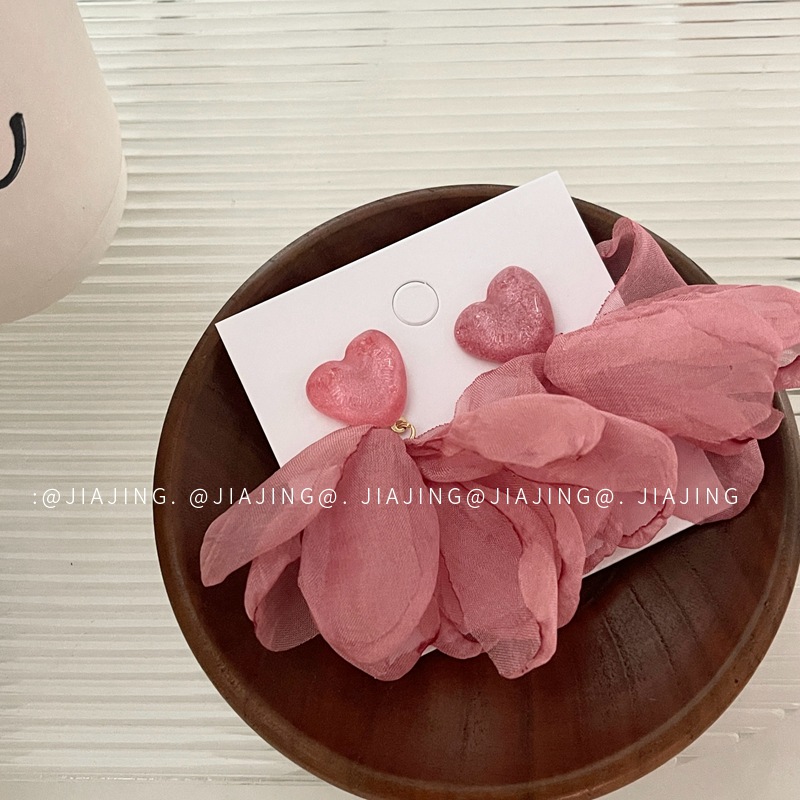 超仙粉色爱心花朵耳环纯欲氛围感小众设计感甜美耳饰925银针森系~