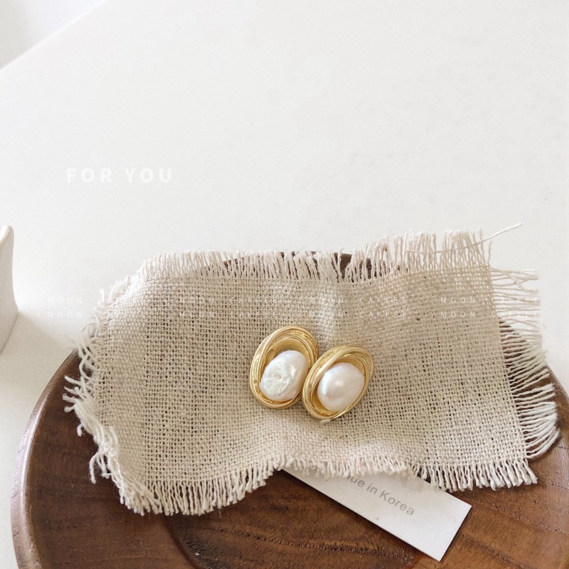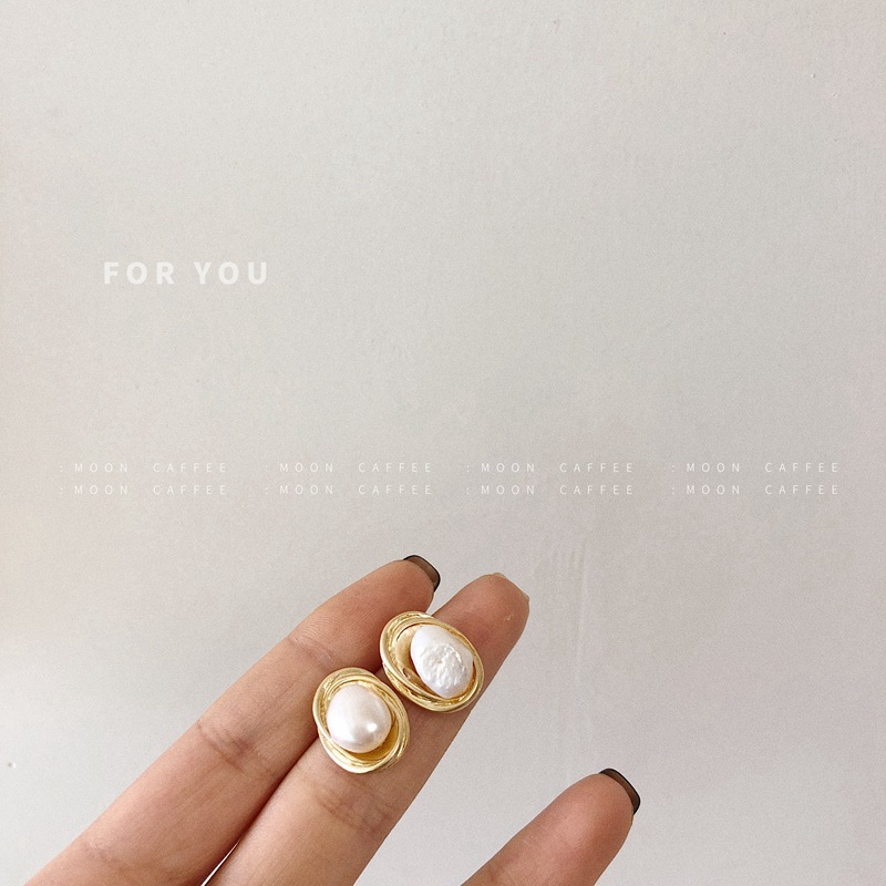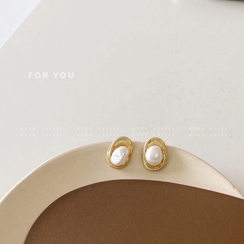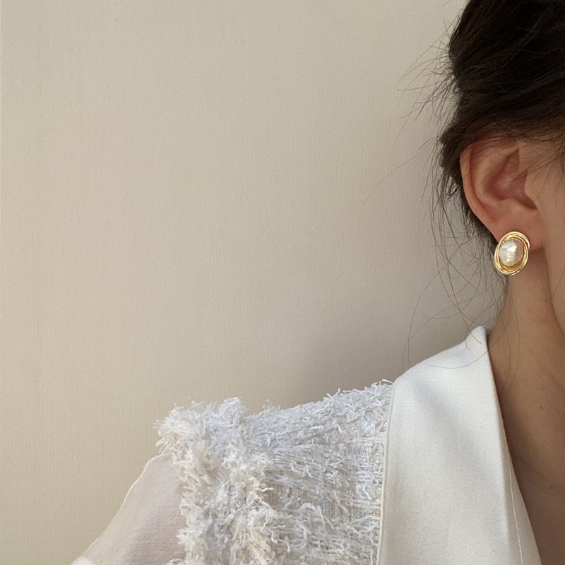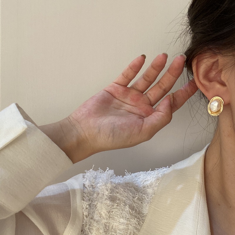 法式复古设计感S925银针短款气质百搭冷淡风巴洛克珍珠耳环耳钉女