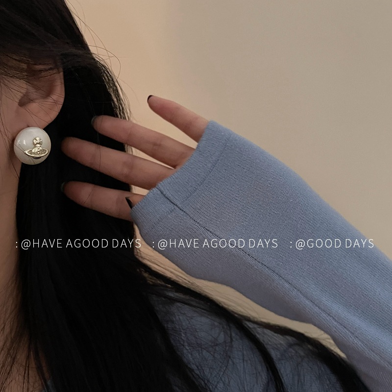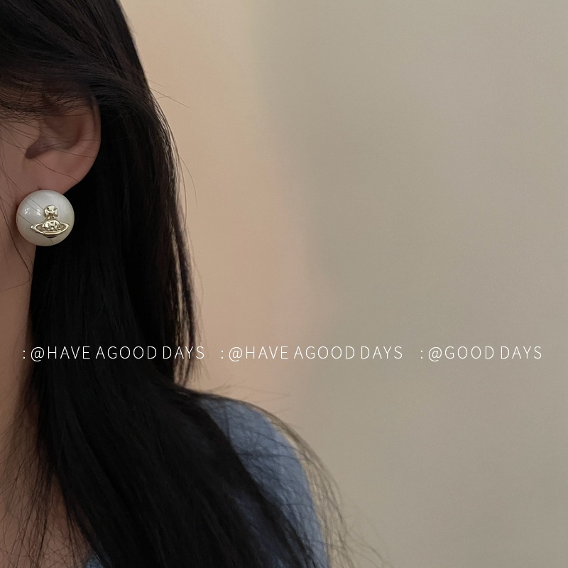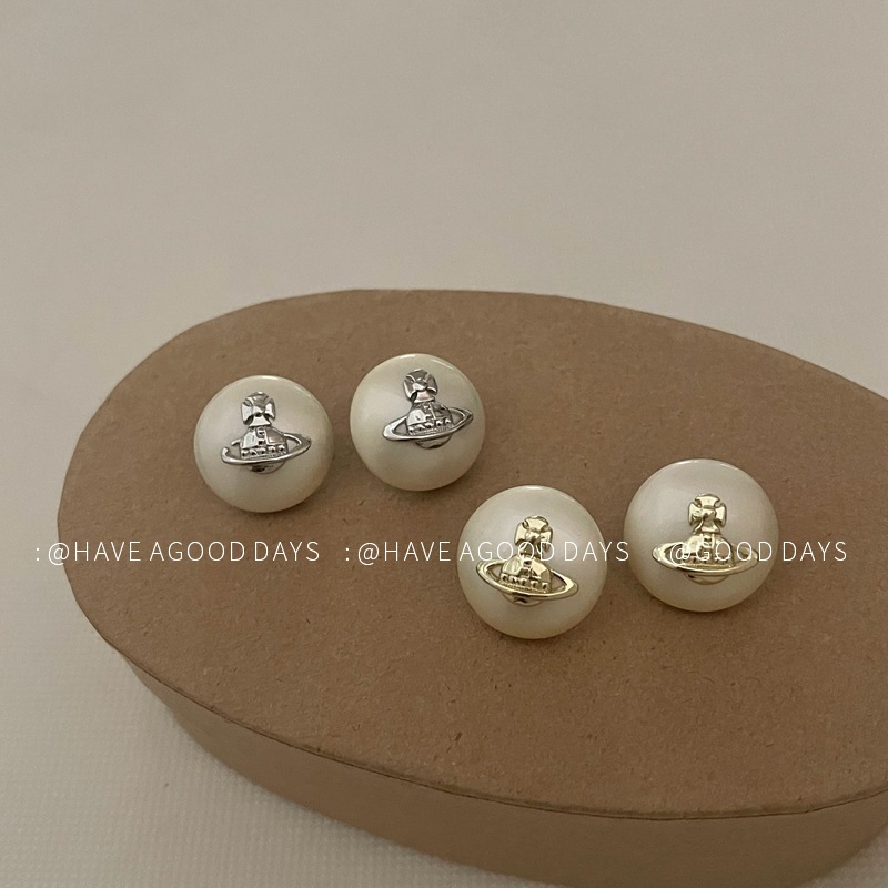 纽扣珍珠土星耳环复古西太后耳饰个性气质简约百搭925银针高级感~