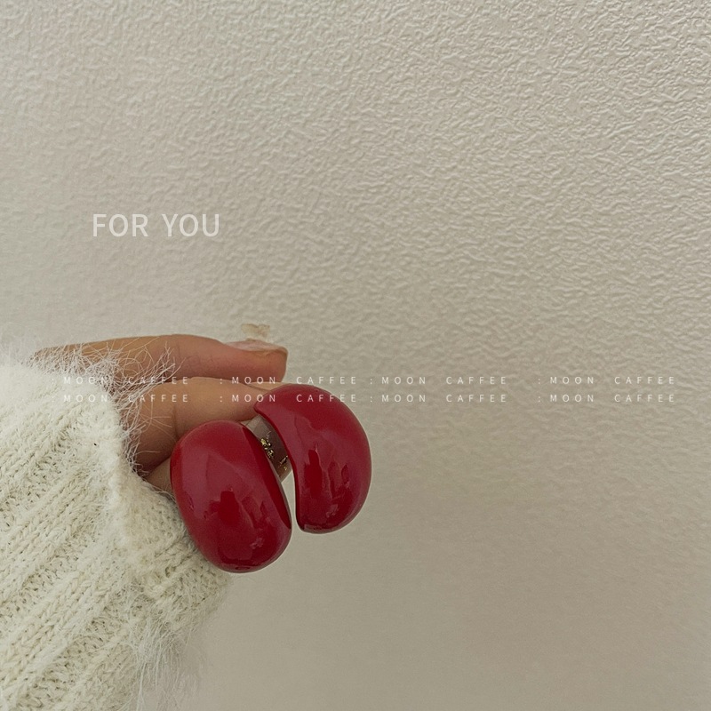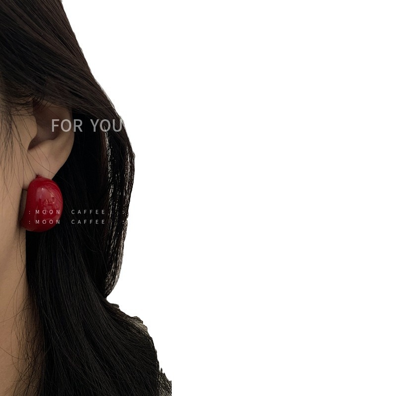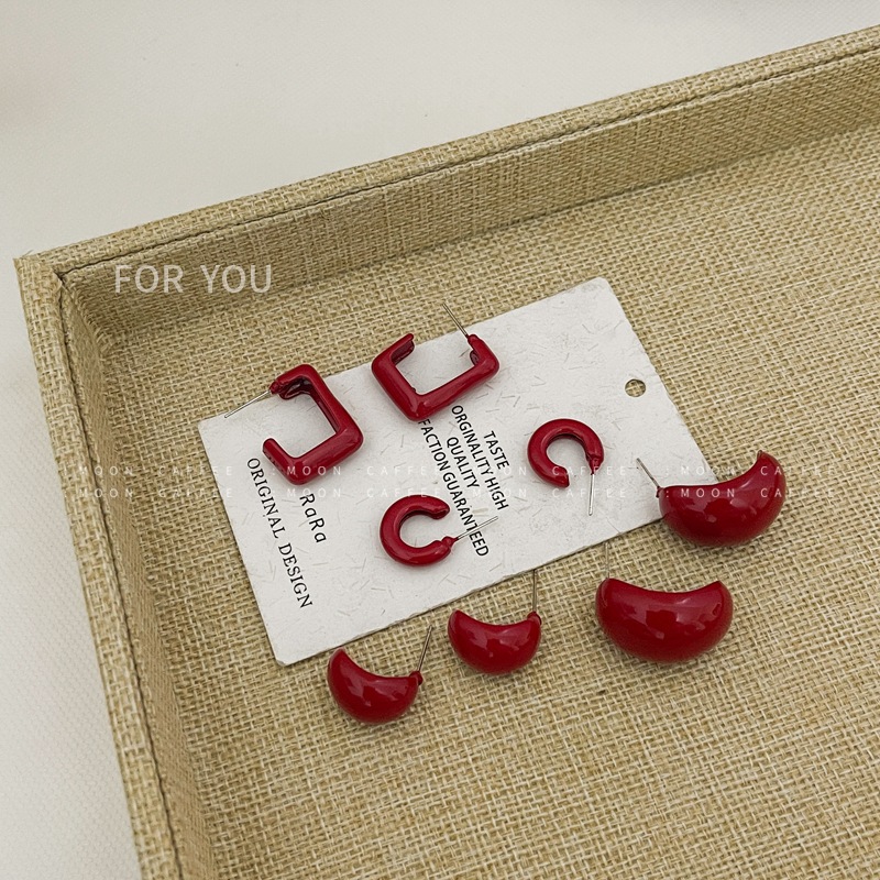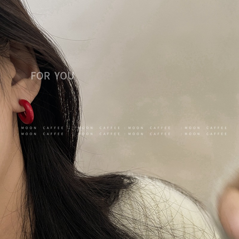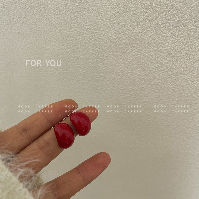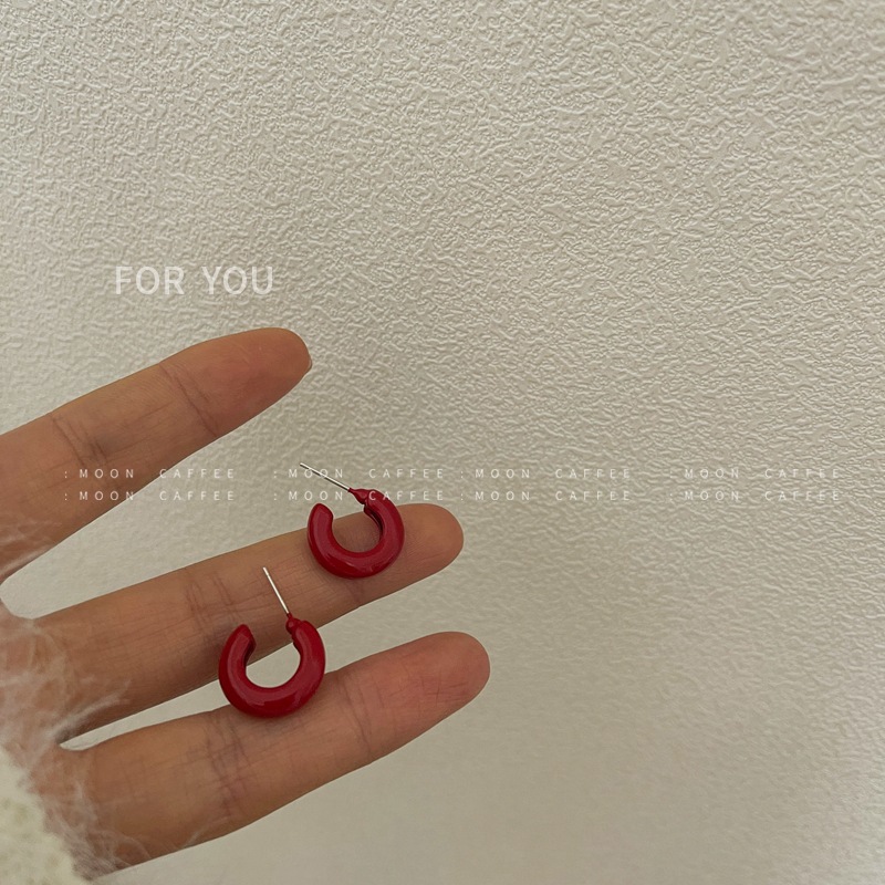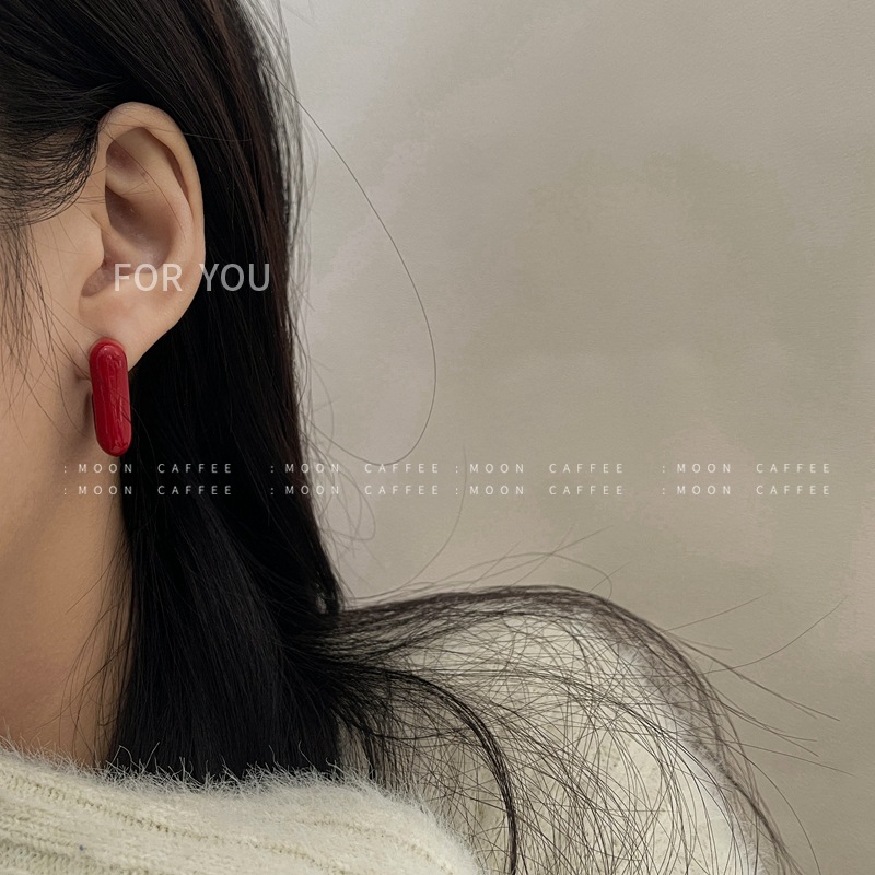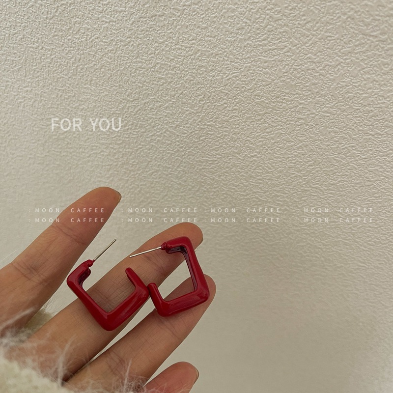 925银针复古红色几何烤漆耳环耳钉女少女新年百搭甜酷风ins耳饰潮