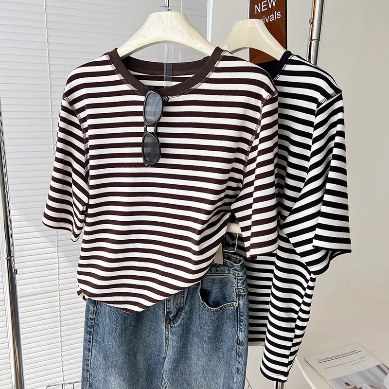 韩版宽松黑白条纹短袖T恤女夏季新款慵懒打底衫半袖休闲上衣ins潮