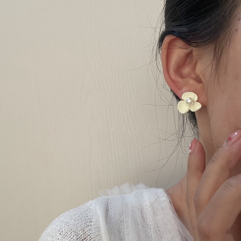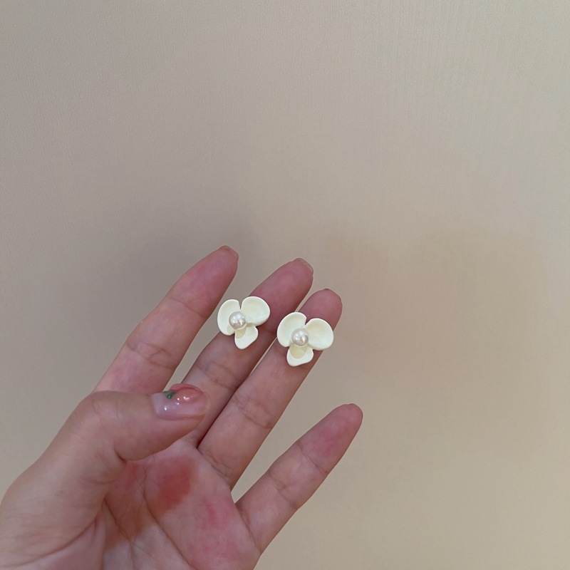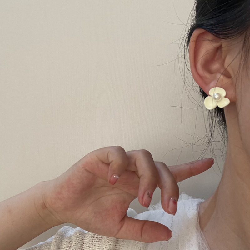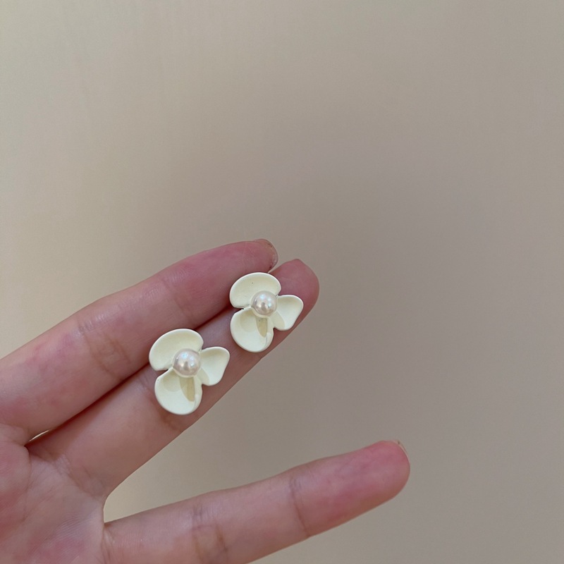 925银针白色烤漆珍珠花朵短款耳环耳钉女气质复古森系耳饰ins简约