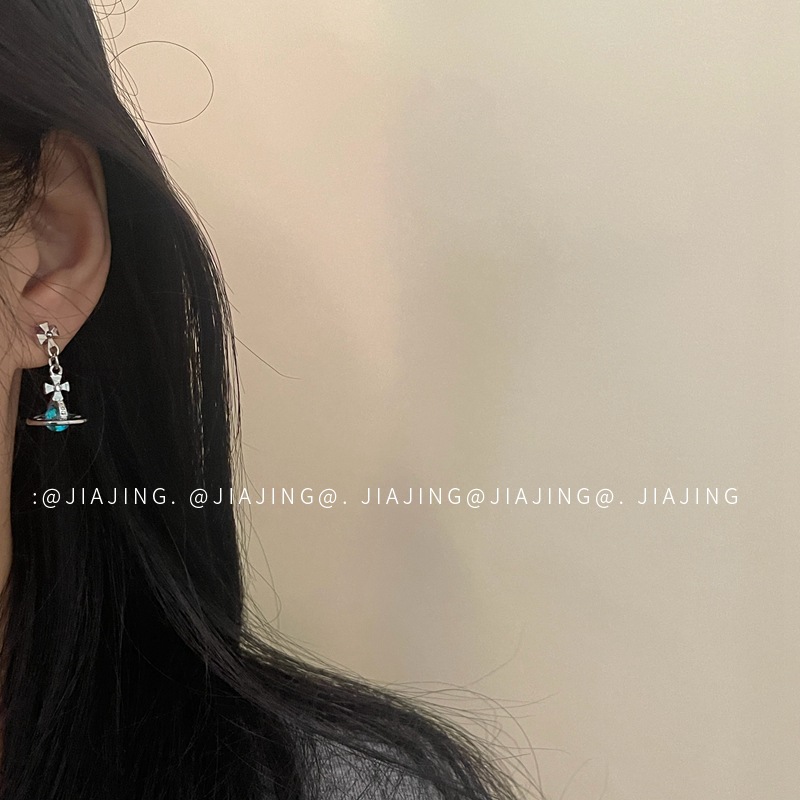 个性透明立体土星耳环西太后925银针女小众设计耳饰高级感轻奢风~