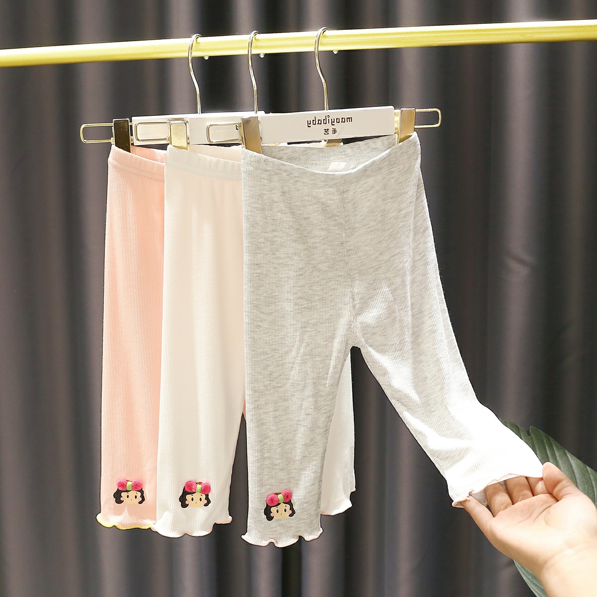 夏季女童打底裤宝宝网红洋气儿童个性潮木耳边卡通冰丝韩版七分裤