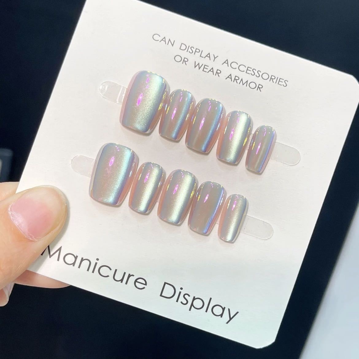 纯手工光疗穿戴甲电镀猫眼2.0批发成品重复使用美甲贴片可拆卸猫