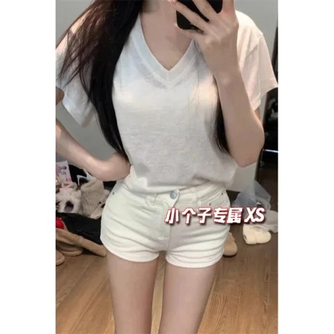 白色高腰修身牛仔短裤女夏季2025新款显瘦百搭显瘦辣妹热裤ins潮