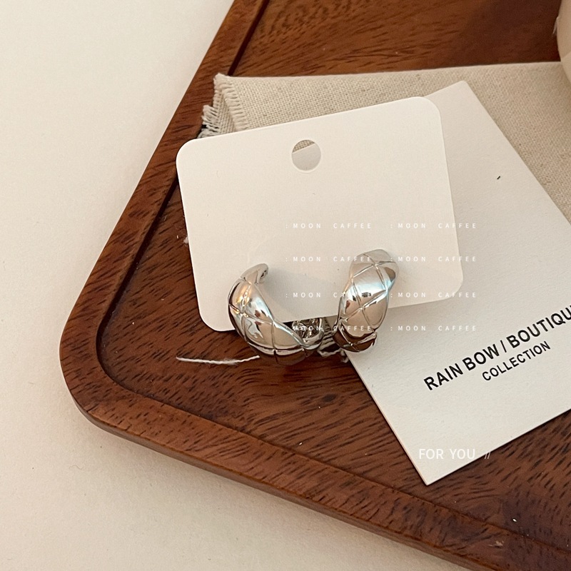 925银针法式金属格纹经典气质复古耳环C型简约百搭冷淡风复古耳钉