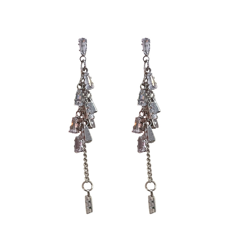小众甜酷辣妹复古夸张长款流苏满钻耳环气质高级感耳钉网红耳饰品