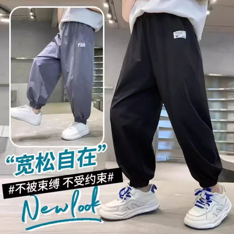 童装夏季冰丝裤子男童潮牌束脚宽松休闲长裤中大童速干运动裤