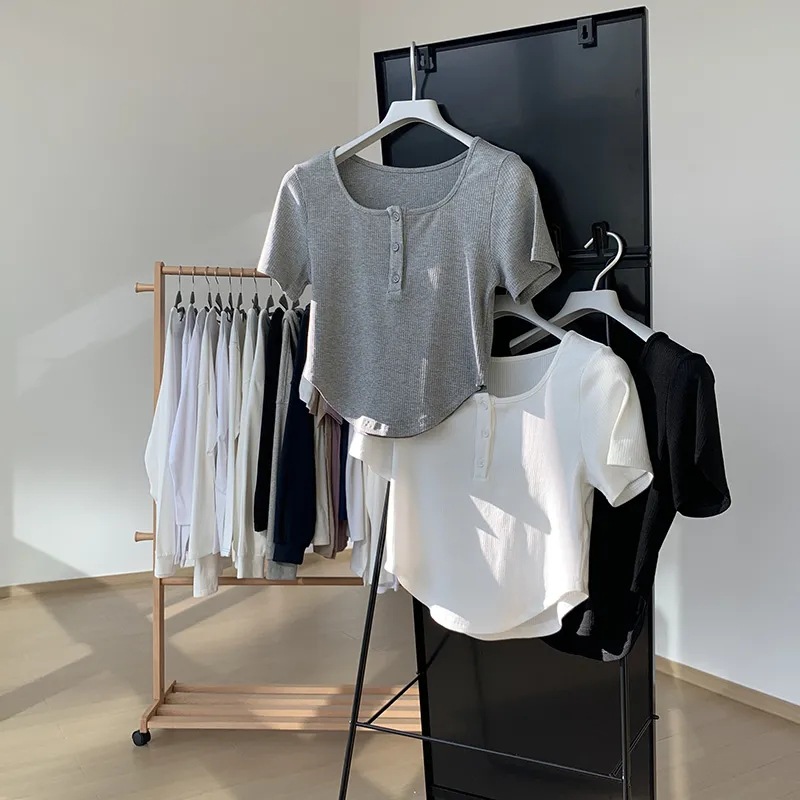 正肩纯欲风T恤女ins潮夏季白色甜辣妹不规则别致修身显瘦短袖上衣