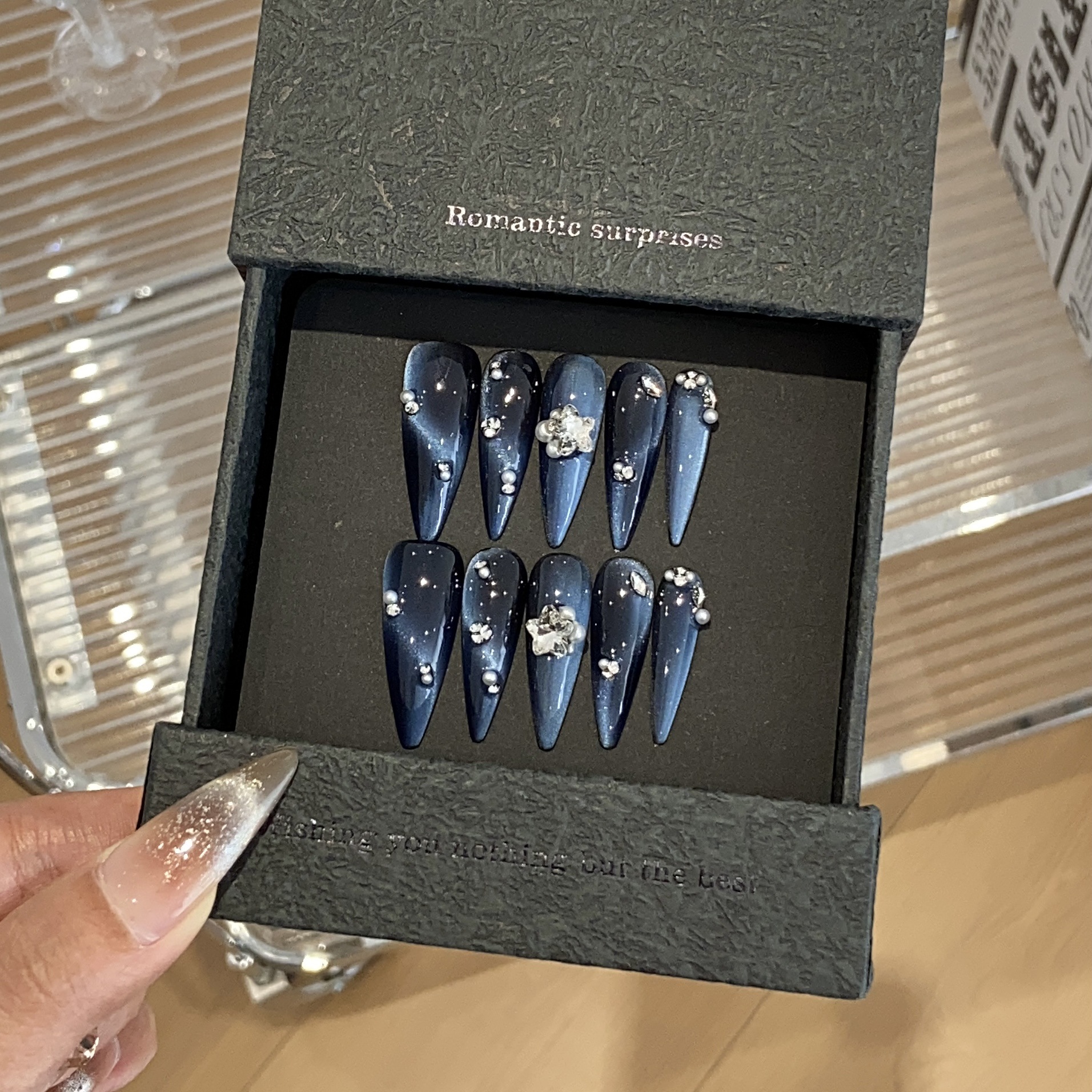 一只顾美甲 【Y】 高级黑色晕染细闪银河系珍珠堆钻黑陨星可拆卸