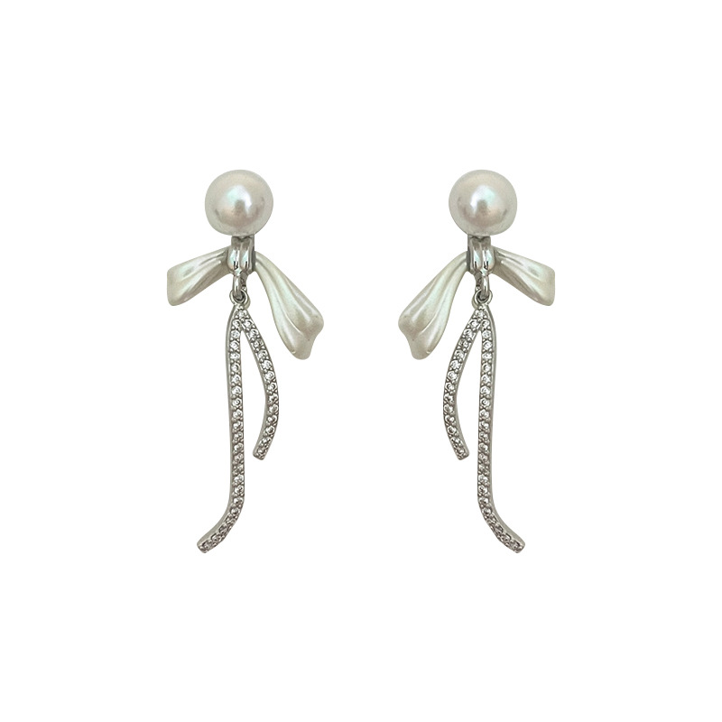 珍珠蝴蝶结流苏耳环女锆石耳钉个性甜酷风轻奢高级感小众设计耳饰