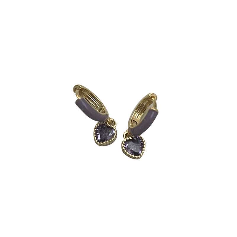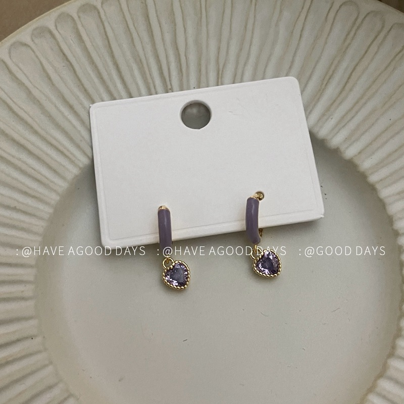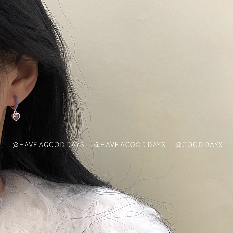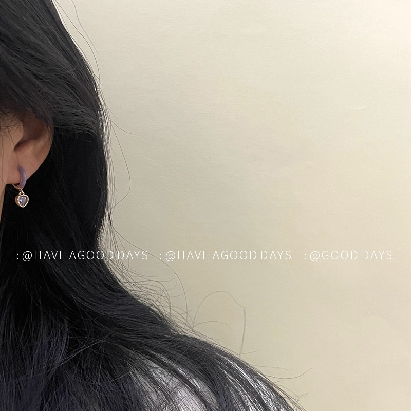 甜美紫色爱心耳环小众设计感气质耳饰个性925银针简约百搭韩版女~