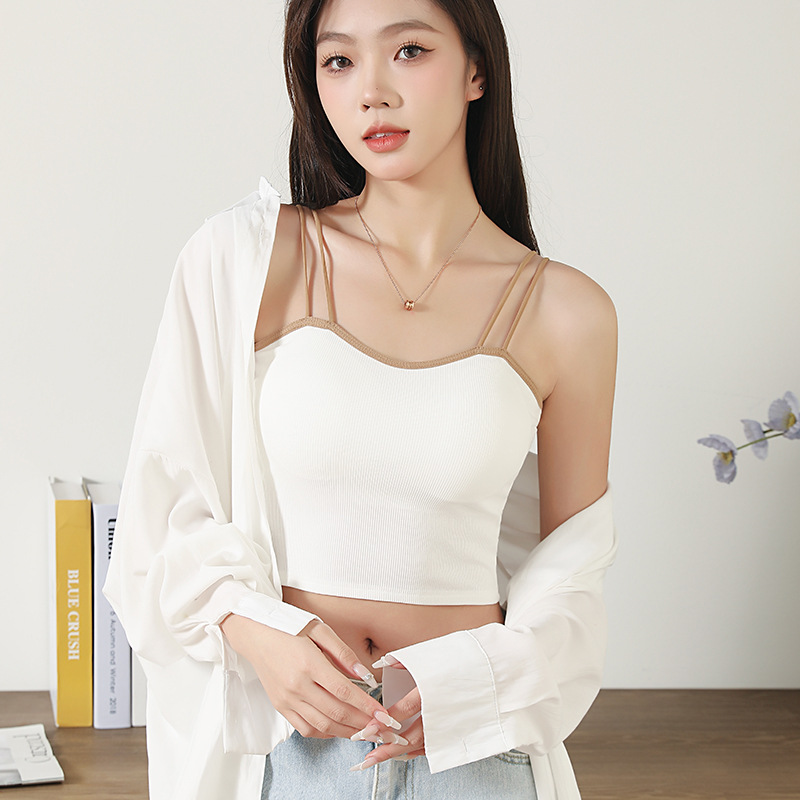 带胸垫吊带背心女百搭免穿文胸打底内搭罩杯一体露脐短款上衣
