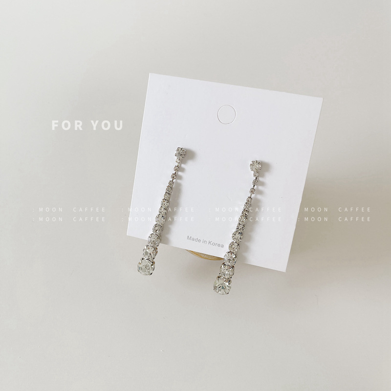 925银针捷克钻简约欧美长款流苏耳环气质港味ins冷淡风耳坠耳饰潮