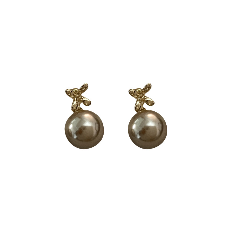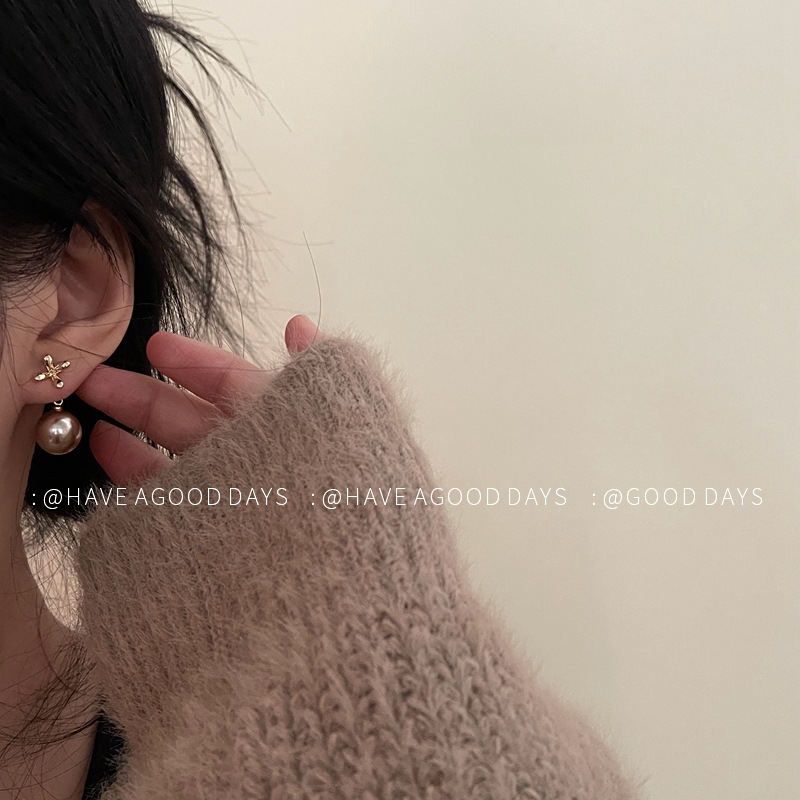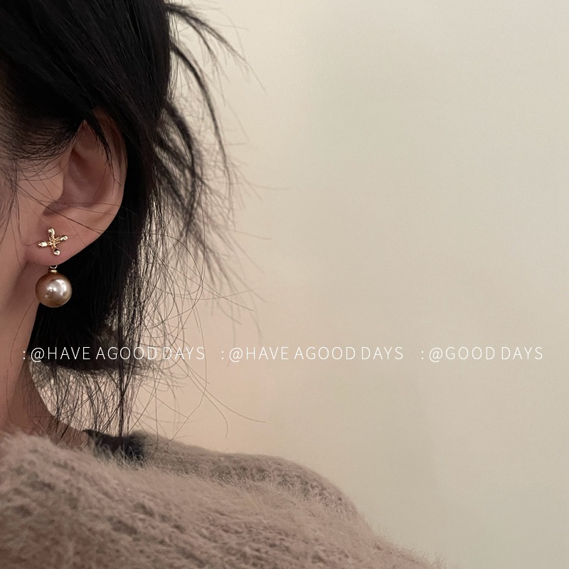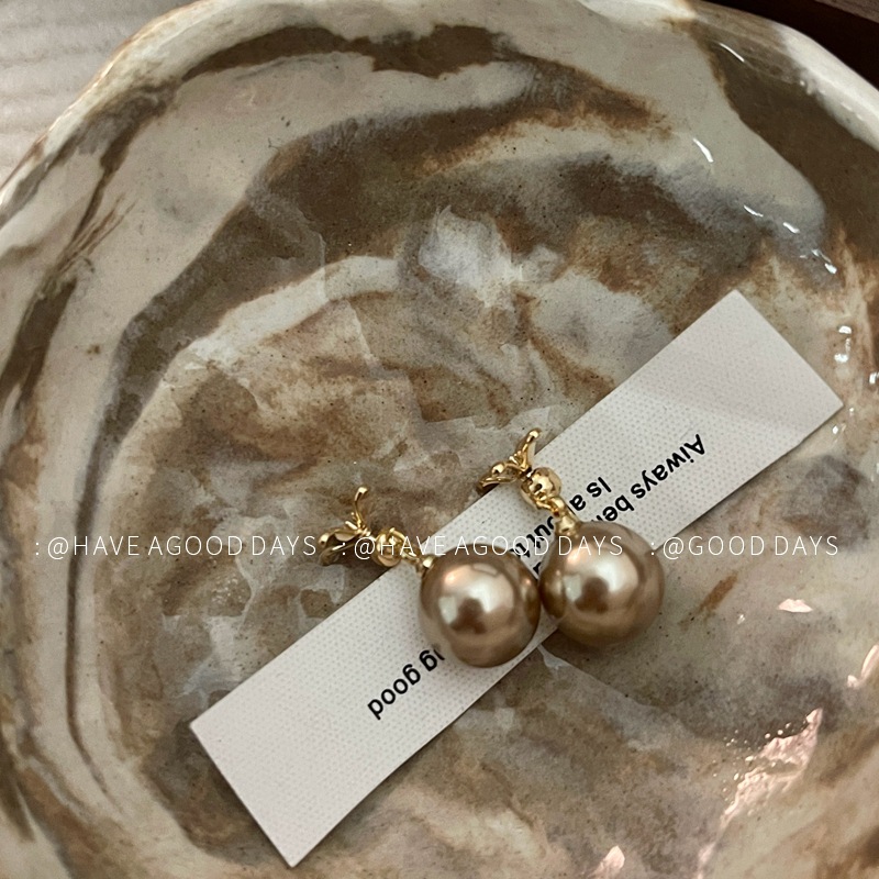 美拉德风焦糖桂花珍珠耳环小众气质高级感轻奢风简约耳饰925银针~