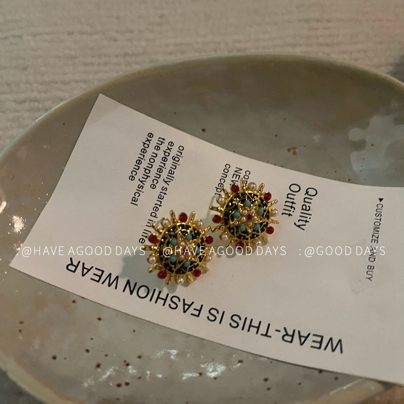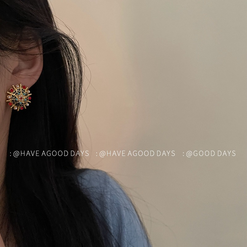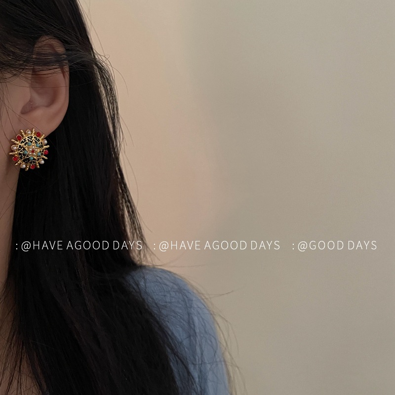 复古精致浮珍珠耳环中古西洋风气质小众重工耳饰925银针高级感~
