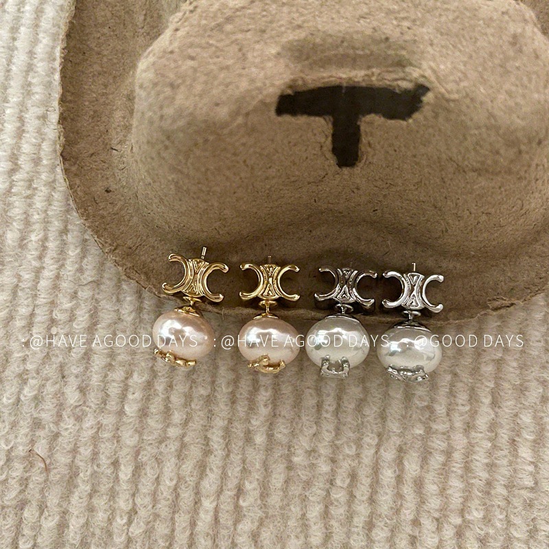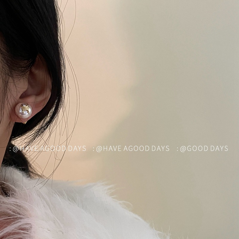 双面字母馒头珍珠耳环轻奢风925银针百搭时尚个性耳饰高级感气质~