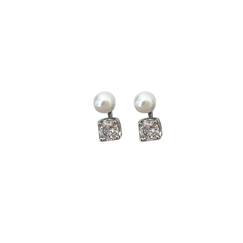 小众设计感前后两戴耳钉时尚高级夏天女耳饰精致珍珠锆石方形耳环