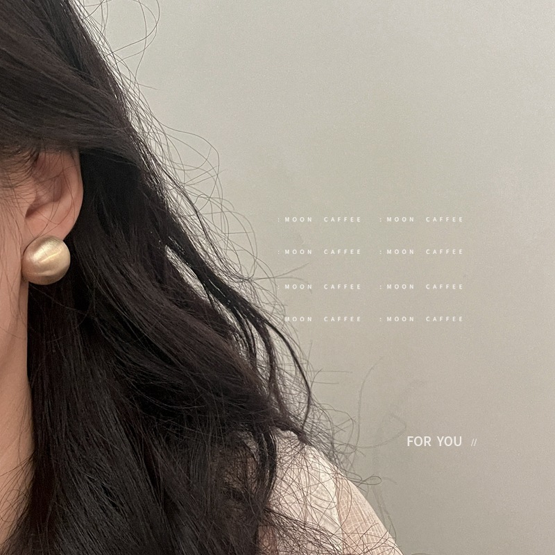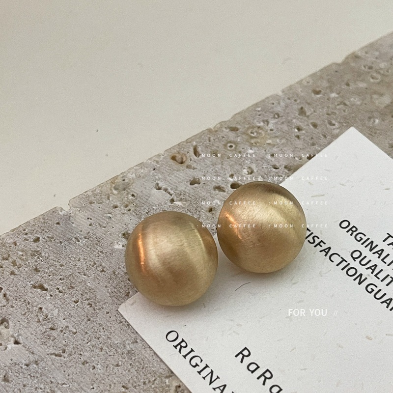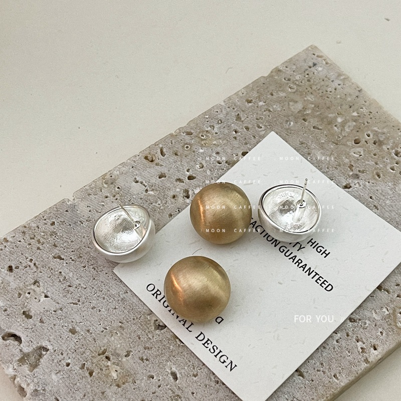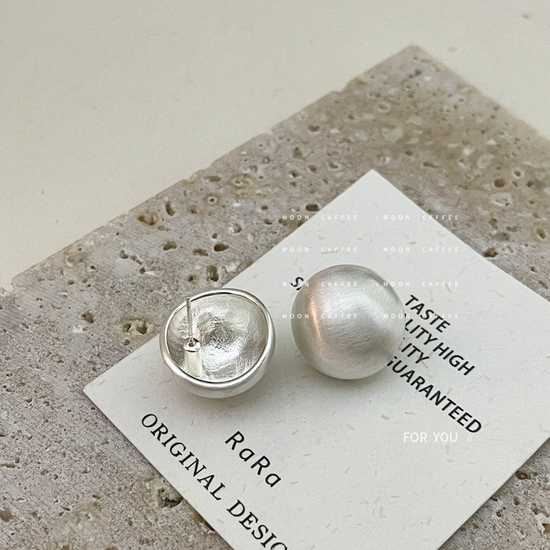 925银针法式金属馒头珠耳钉拉丝工艺复古时髦网红大气耳环ins耳饰