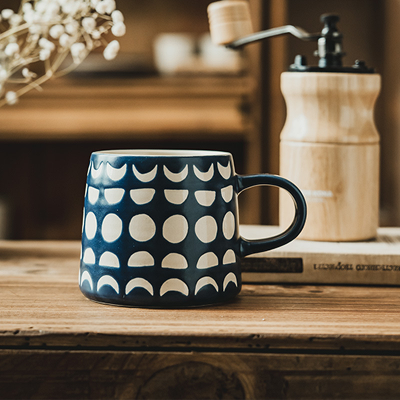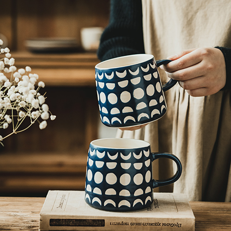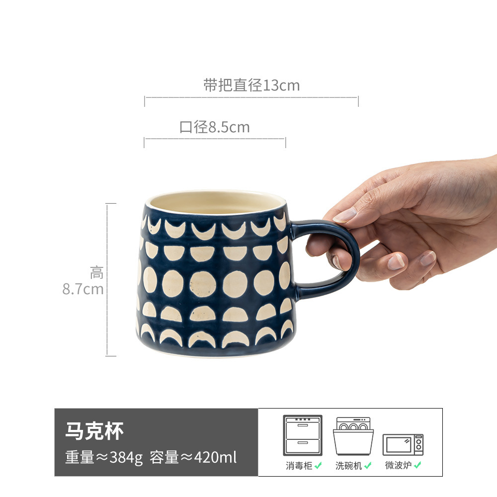 复古创意马克杯手绘蓝色陶瓷杯子批发家用水杯大号咖啡杯宿舍水杯