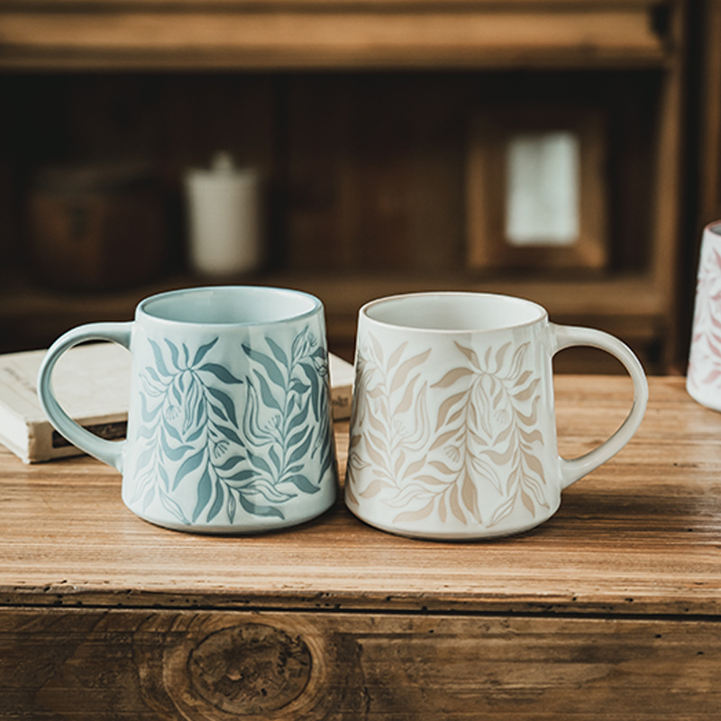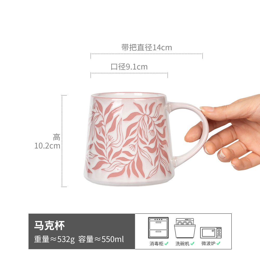 高颜值大容量马克杯手绘兰花杯陶瓷杯子批发家用水杯早餐杯咖啡杯