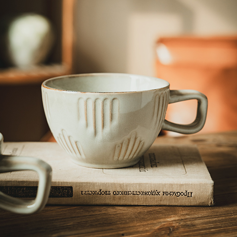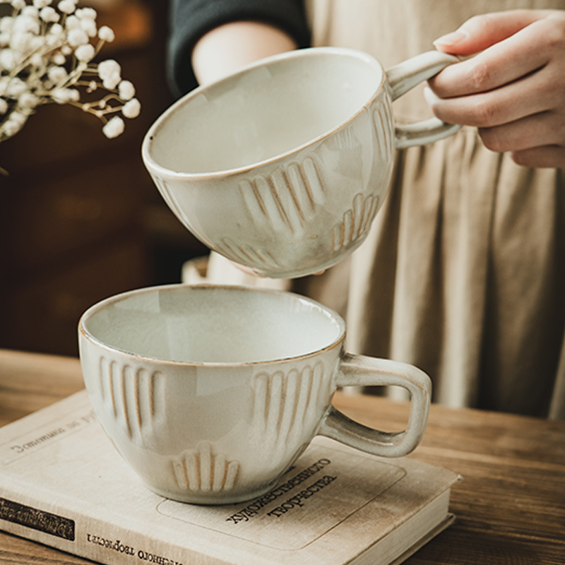 大容量精致马克杯实用宽口杯子家用陶瓷杯批发复古早餐杯水杯茶杯