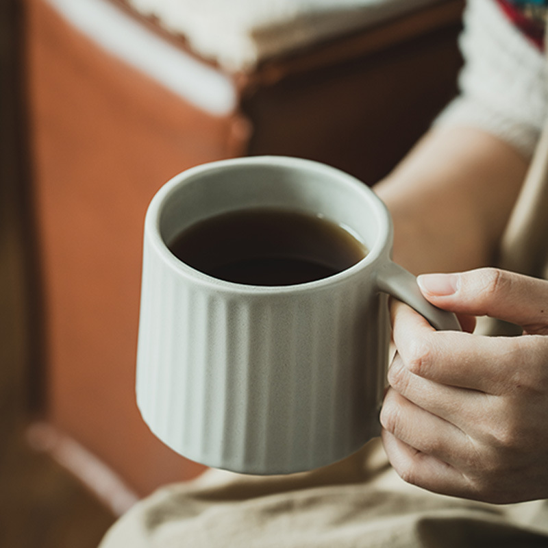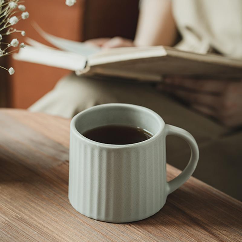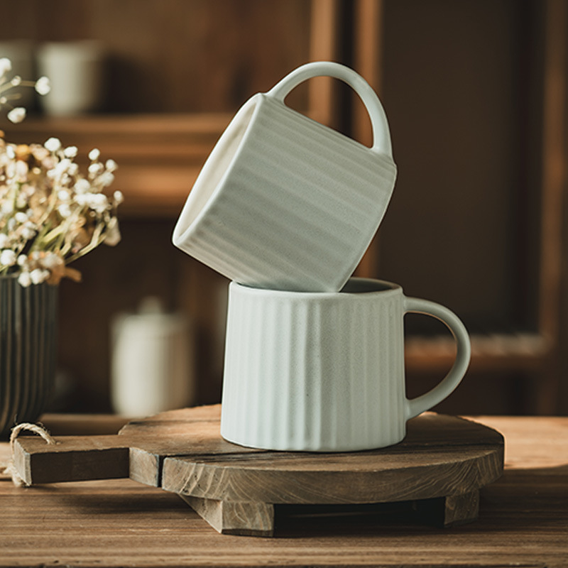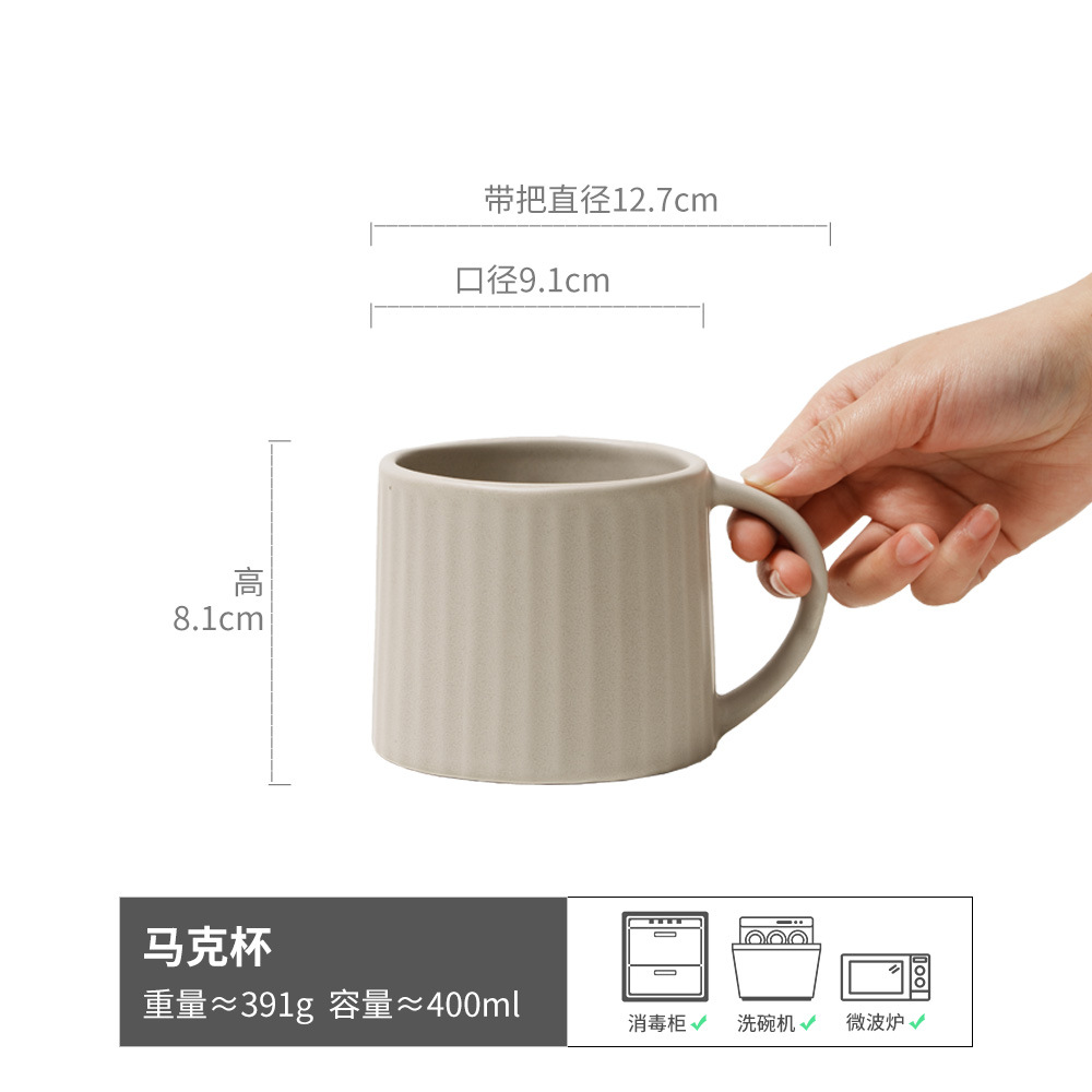 纯色竖纹马克杯大容量陶瓷杯子批发家用早餐杯复古水杯茶杯咖啡杯