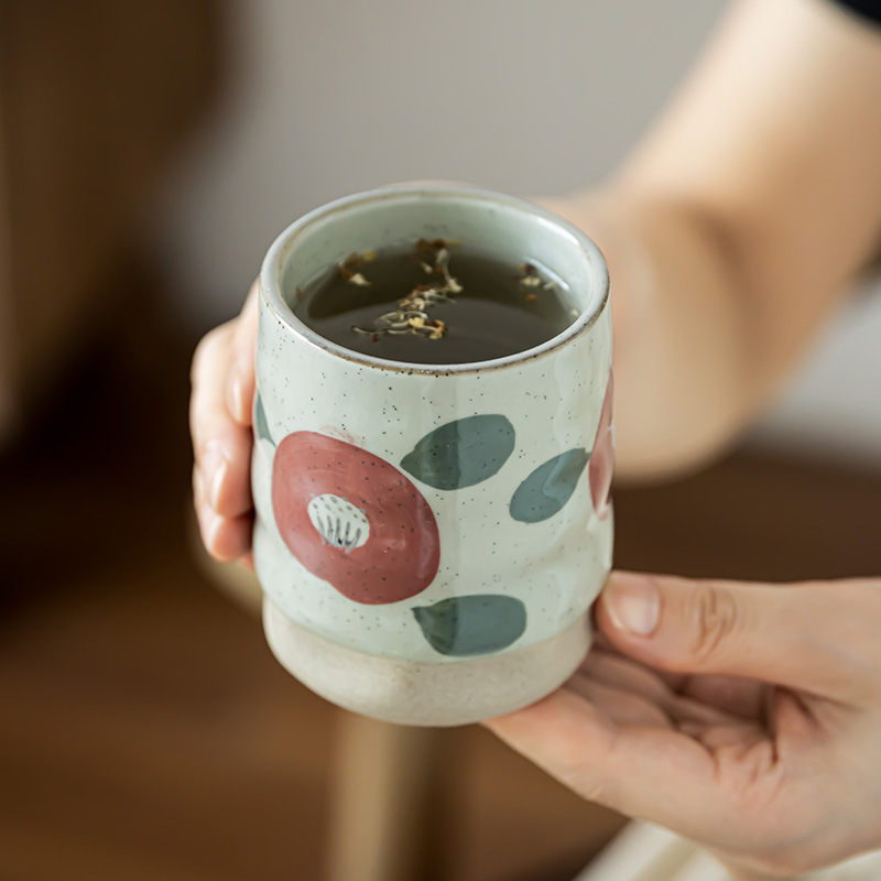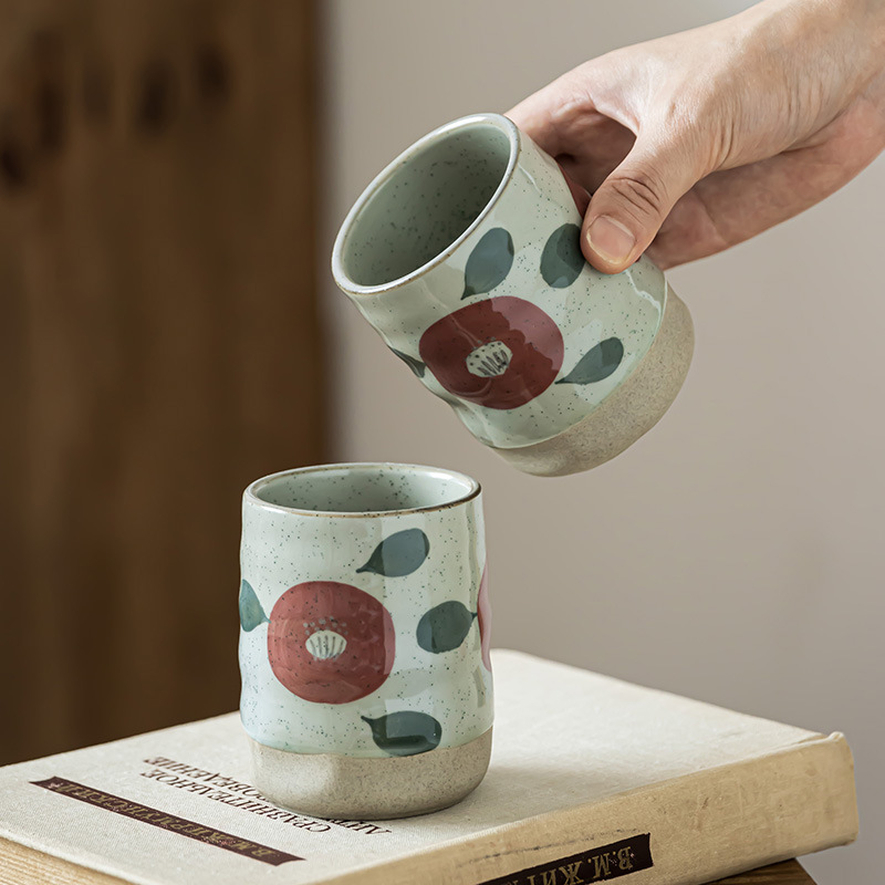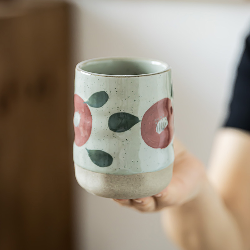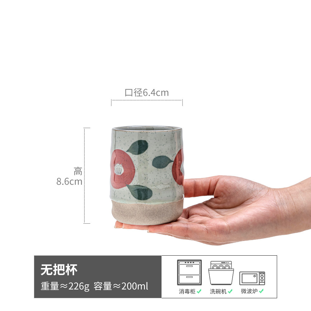 无把杯粗陶彩绘杯子家用陶瓷杯水杯日式茶杯餐厅手握杯酒水杯
