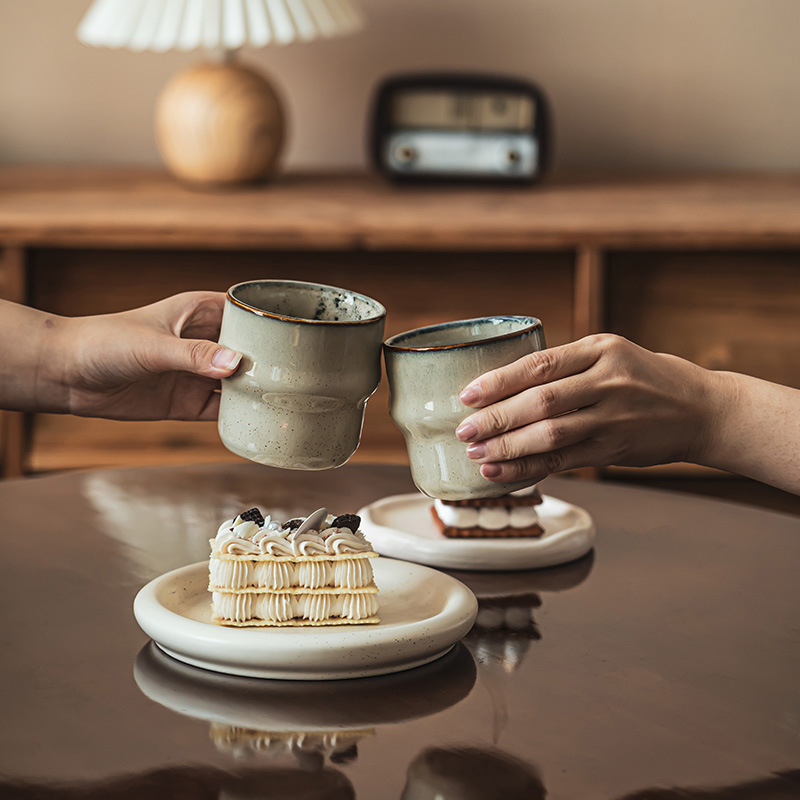 日式复古手握杯设计感陶瓷无把杯家用杯子早餐杯咖啡杯水杯主人杯