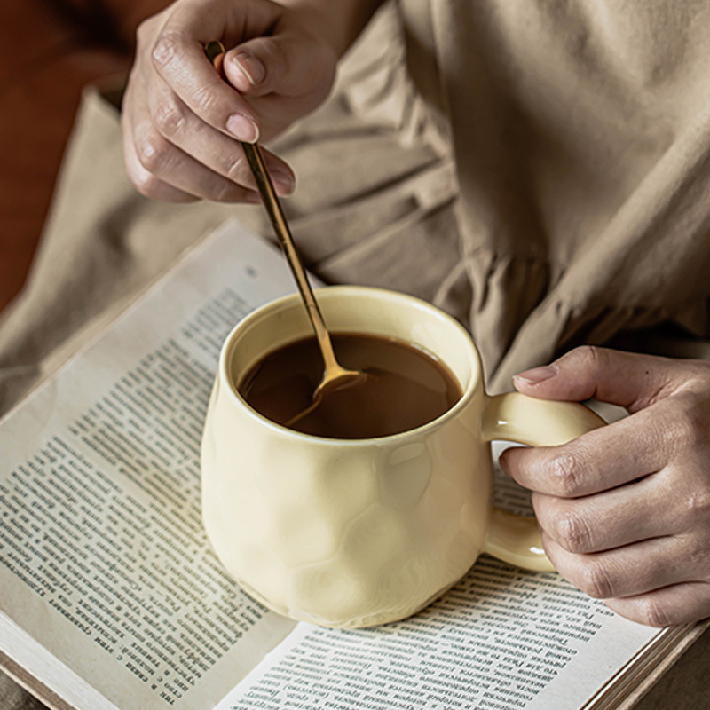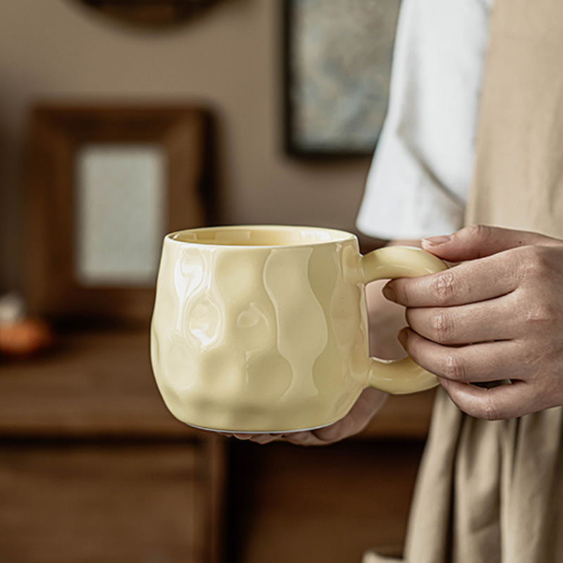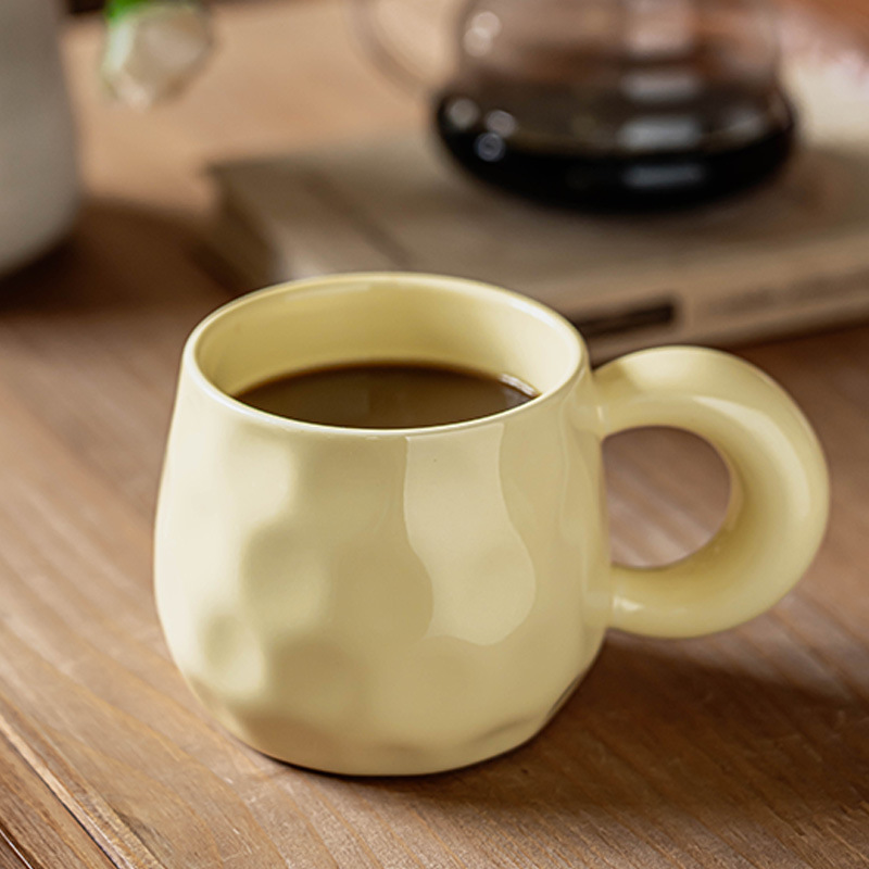 奶油色马克杯高颜值陶瓷杯子批发纯色粗把杯家用水杯大容量咖啡杯