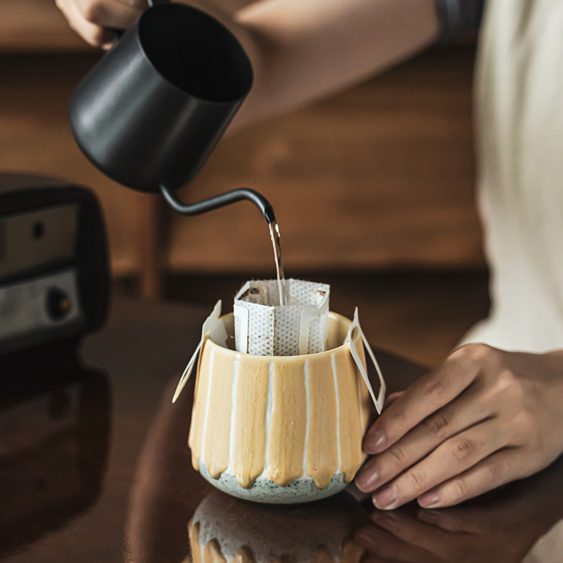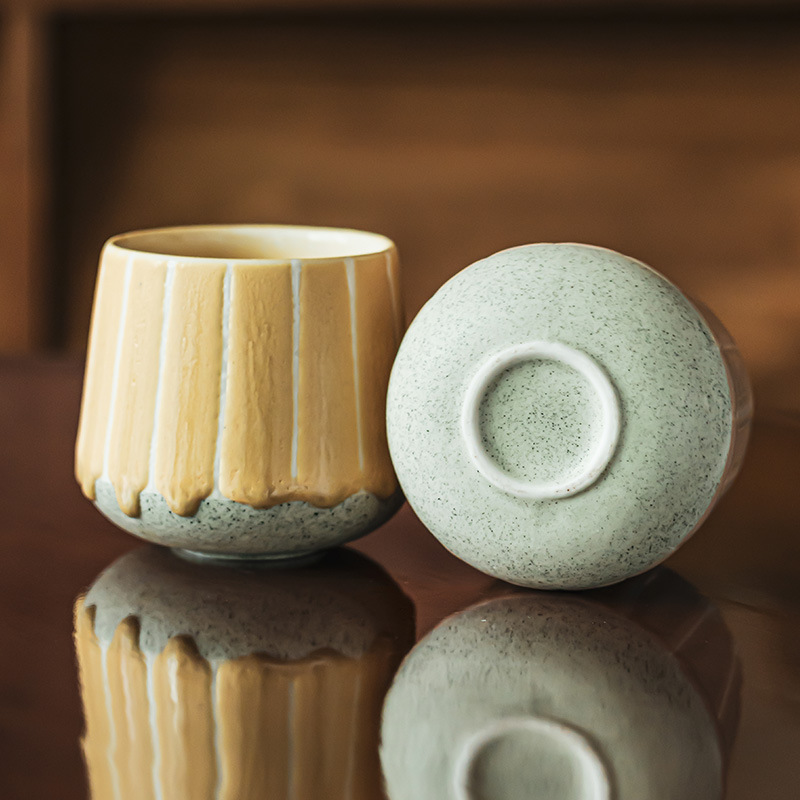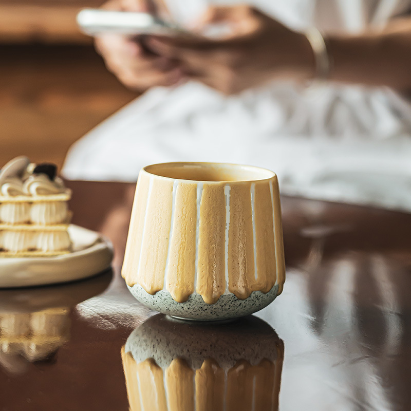 手握咖啡杯日式陶瓷杯创意条纹杯家用茶杯无把杯汤吞酒水杯子