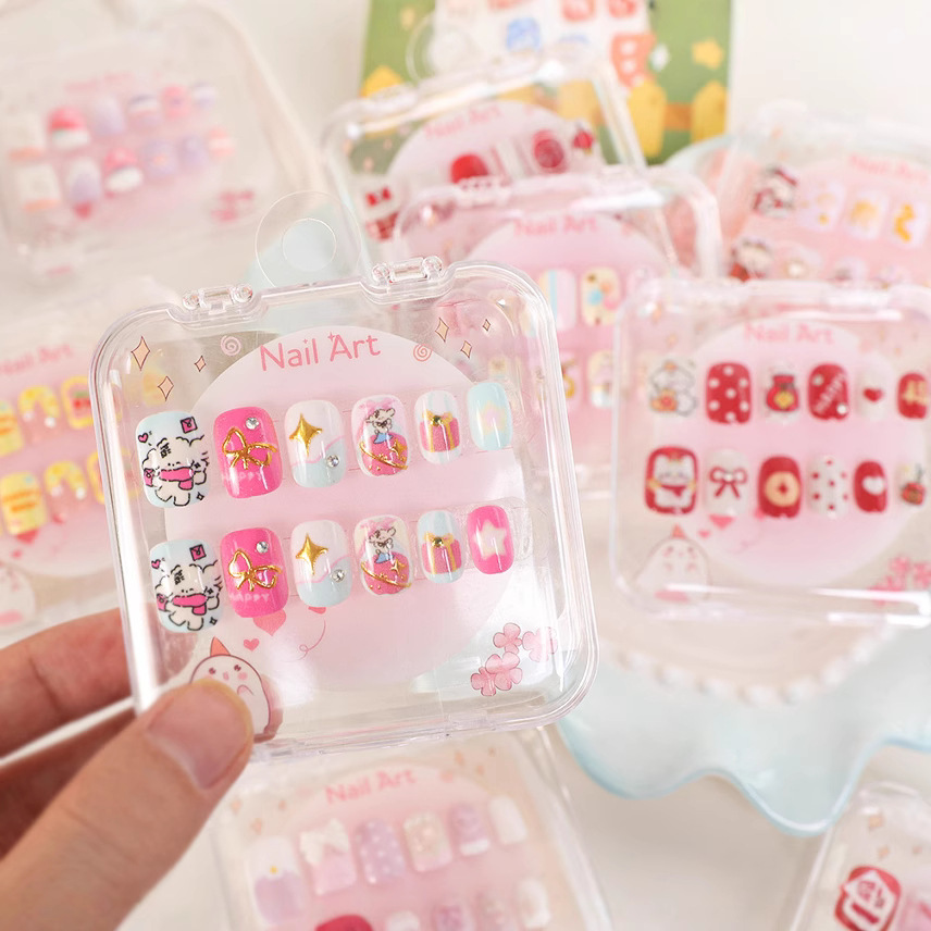 可爱猫眼儿童甲片卡通美甲成品穿戴甲鎏金甲片贴片指甲片果冻胶款