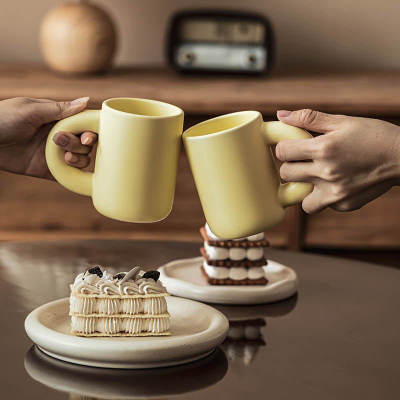 高颜值大容量杯子胖手柄下午茶马克杯家居日用牛奶杯子陶瓷喝水杯