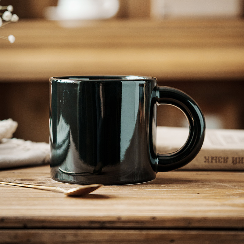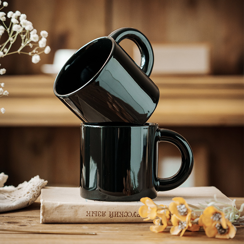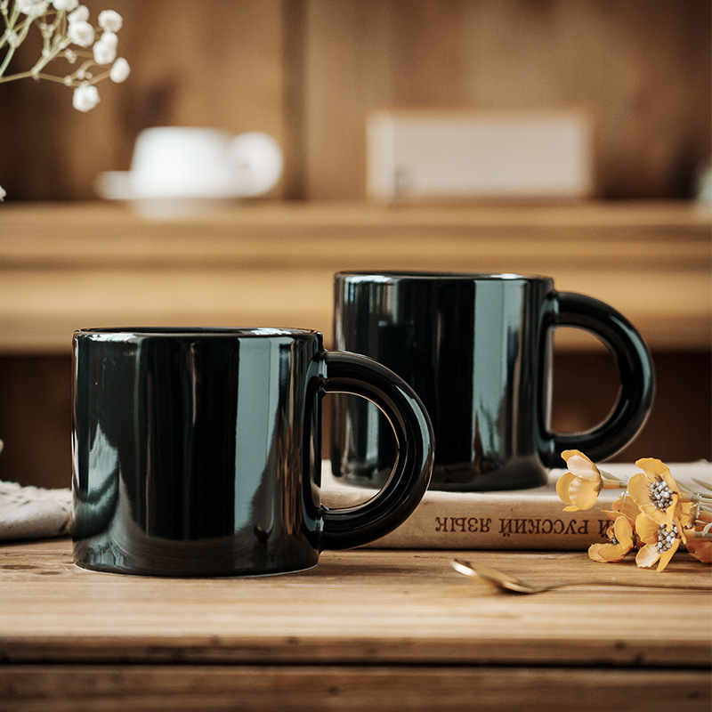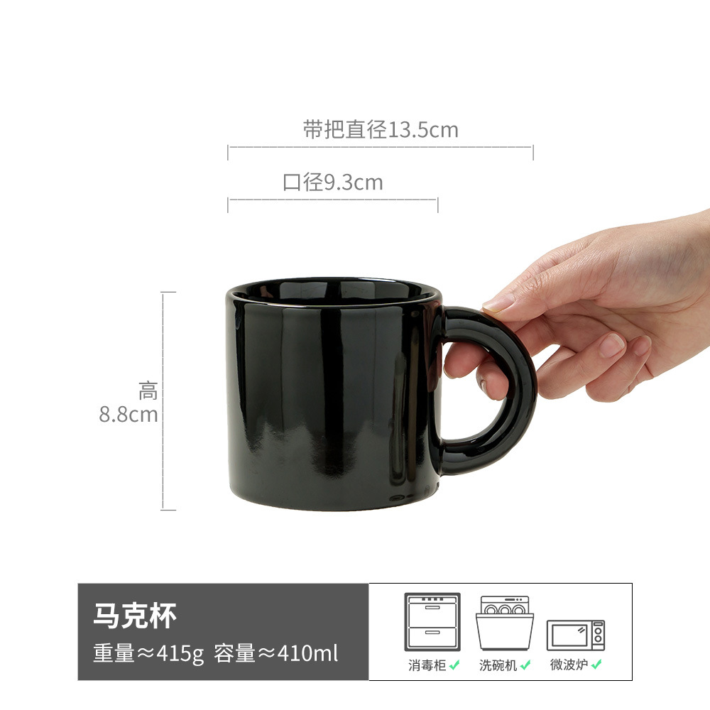 简约经典黑色陶瓷马克杯家用早餐杯咖啡杯高级感杯子纯色水杯
