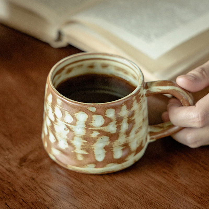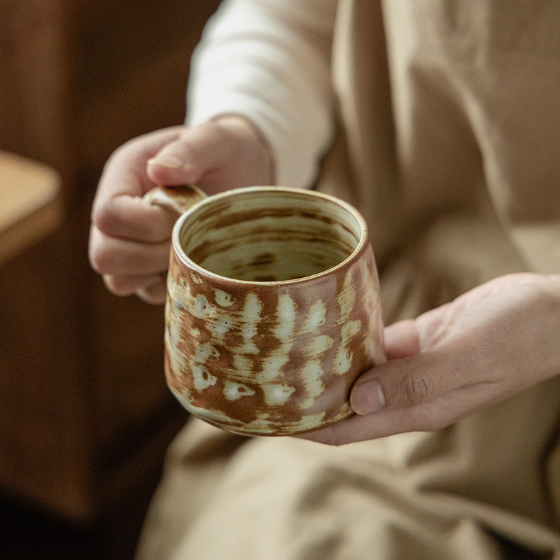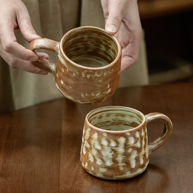 做旧感粗陶杯复古陶瓷马克杯下午茶咖啡杯家用杯子茶杯拉花拿铁杯